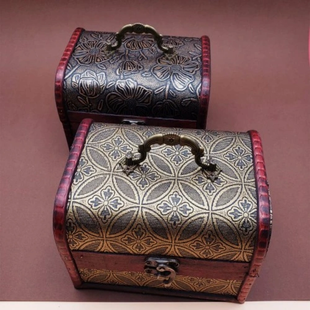 Ahşap Deri Sandık Kutusu Hediyelik Deri Sandık3'lü Ahşap Deri Sandık Kutusu3'lü ahşap ahşap deri sandık kutusu tasarımı görünümü ve işlevselliği ile dikkat çekmekte.Ahşap deri sandık kutu iç içe 3 boy çıkmakta olup hangi boyu isterseniz çıkartıp işinizi görebilir diğer iki boyuda iç içe koyup yerden tasaruf edebilirsiniz.Özel el yapımı el işçiliği ile üretilmiş olup eskitme nostaljik görünüm Kutu ile sizleri eskiye götürecek.Ahşap sandık kutusuna küçük özel eşyalarınızı koyup saklayabilirsiniz.3'lü ahşap deri kutu sevdiklerinize verebileceğiniz nostaljik hediye kutusu.Ahşap deri kutu üzerinde farklı desenler olup her bir desen hediye kutusunu oldukça şık bir görünüm haline getiriyor. Sandık Özellikleri:* Kaliteli ahşap malzemeden üretilmiştir.* Ahşap sandık kutu üzerinde desenler bulunmkatadır.* Karışık modellerde gönderilmektedir.* Tasarımı ve görüntüsü ile dikkat çekmektedir.* Vintage Nostaljik görünüm.* Büyükten küçüğe iç içe 3 adet çıkmaktadır.Ahşap Hediye Kutusu:Büyük Boy Kutu Ölçüsü: 10.5 cm x 15.5 cm x 5.5 cmOrta Boy Kutu Ölçüsü: 8 cm x 12 cm x 4 cm Küçük Boy Kutu Ölçüsü: 5.5 cm x 8 cm x 2.5 cm