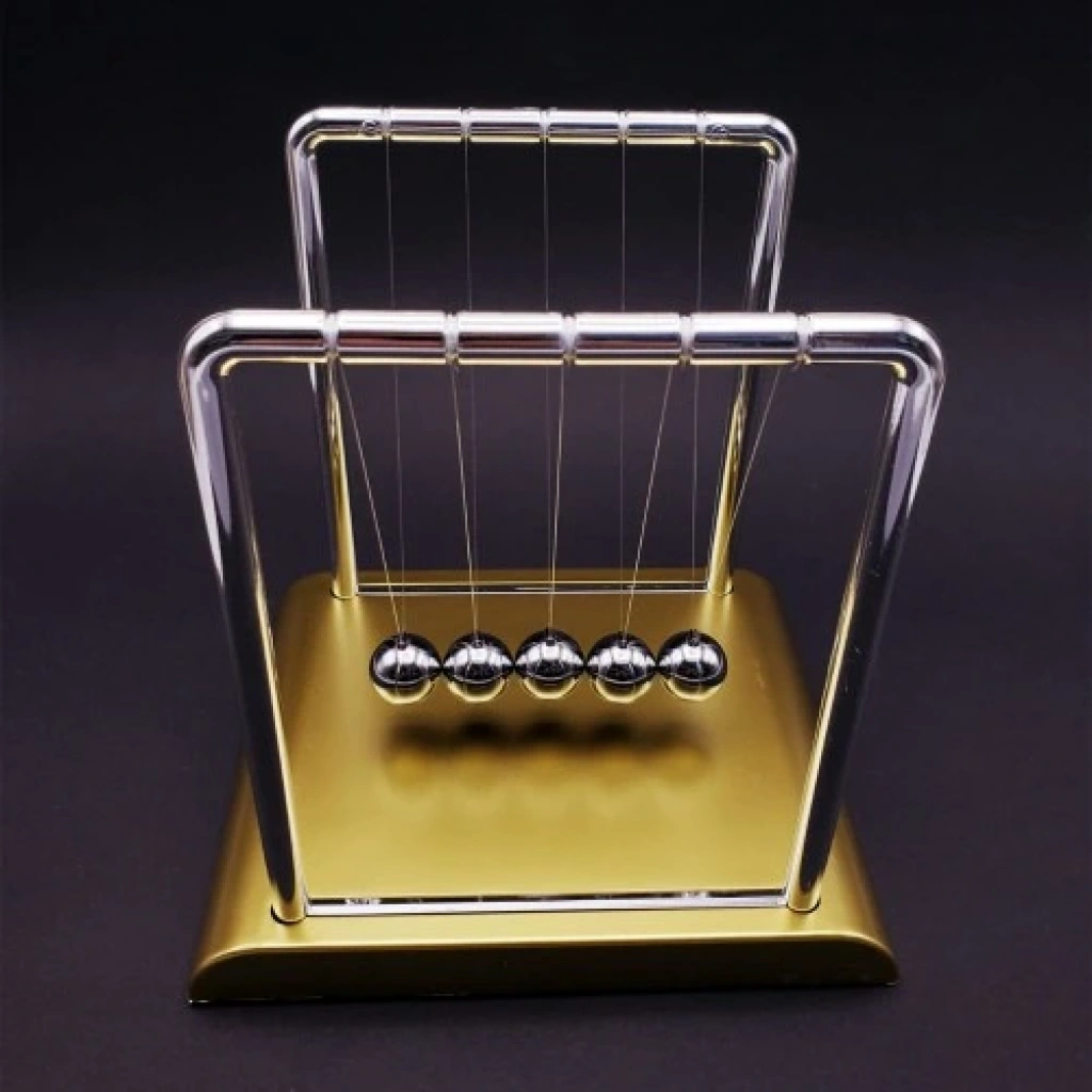 Büyük Boy Newton Denge Topları Büyük boy Newton denge topları, altın rengi (gold) balans tasarımıyla masa ve ofis dekorasyonlarına modern bir görünüm kazandırır. Alt kaidesi ve metal toplarıyla estetik bir uyum yakalayan bu denge topları, hem dekoratif hem de stres giderici bir aksesuardır.Newton denge topları, yan yana dizilmiş beş topun birbirine çarparak oluşturduğu ritmik ses ile zihinsel rahatlama sağlar. Hareket ettirildiğinde başlayan denge ve ses döngüsü, kısa sürede sakinleştirici bir etki yaratır. Şık tasarımı sayesinde çalışma alanlarına veya hediye olarak tercih edilebilecek özel bir üründür.Ürün Özellikleri:Kaliteli plastik kaide ve metal toplardan üretilmiştir.5 adet metal denge topu bulunur.Stres azaltıcı ve dikkat çekici tasarım.Şık altın rengi balans görünümü.Dekoratif masa süsü olarak kullanılabilir.Ürün ölçüsü: 18 cm x 18 cm x 15 cm