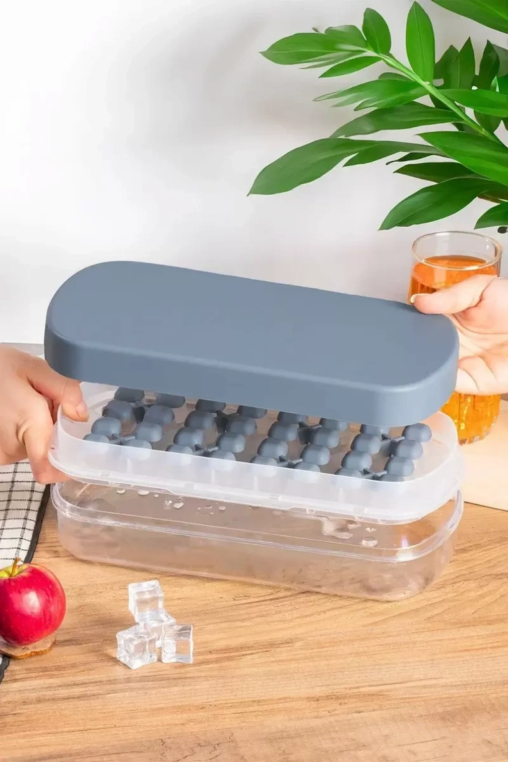 HERŞEYTREND 32'li Buzluk Buz Saklama Kabı - Bas Çıkar Buz Küpü Hazneli Buz Kalıbı-Antrasit Royaleks-MP-7075