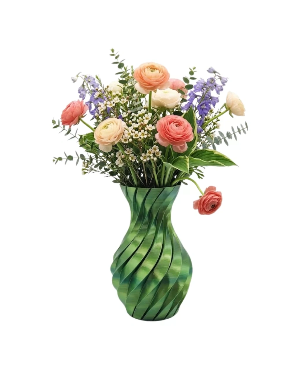 Yaşam alanlarınıza modern bir dokunuş katmak istiyorsanız, yeşil spiral 3D vazo tam aradığınız parça. Özgün tasarımı ve dikkat çekici spiral formu sayesinde bulunduğu ortamda fark yaratır. Canlı yeşil rengi doğadan ilham alarak mekâna enerji ve ferahlık katar.Estetik görünümünün yanı sıra kullanışlı yapısı ile de öne çıkar. Hafif ve sağlam yapısı sayesinde farklı alanlarda rahatlıkla kullanılabilir. Salon sehpası, TV ünitesi, raf veya masa üzerinde dekoratif obje olarak konumlandırılabilir.Modern, minimal ve çağdaş dekorasyon tarzlarıyla uyum sağlayan bu vazo, hem günlük kullanım hem de özel dekorasyon düzenlemeleri için idealdir. Şık ve zarif tasarımı ile evinize değer katar.