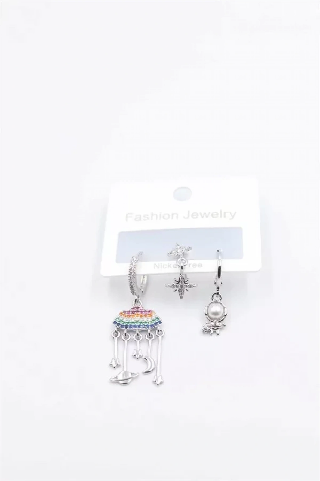 HERŞEYTREND 3'lü Bulut Küpe - Gümüş