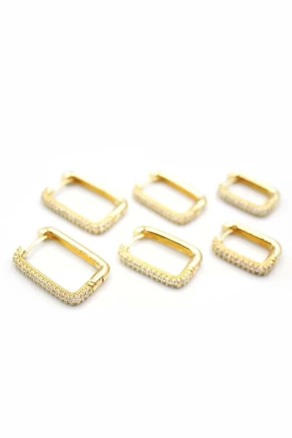 HERŞEYTREND 6'lı Taşlı Dikdörtgen Küpe - Altın