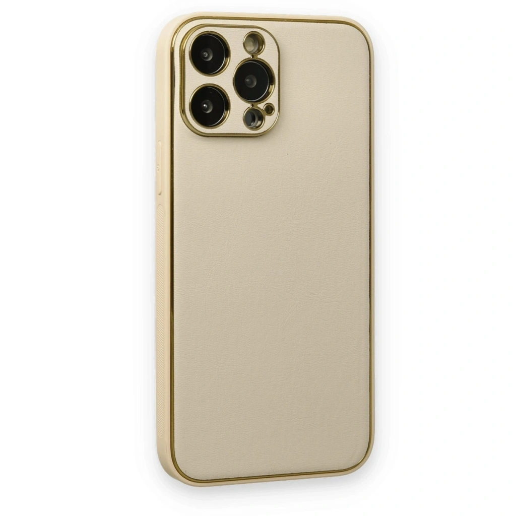 HERŞEYTREND Apple İphone 13 Pro Kılıf Coco Deri Silikon Kapak - Gold