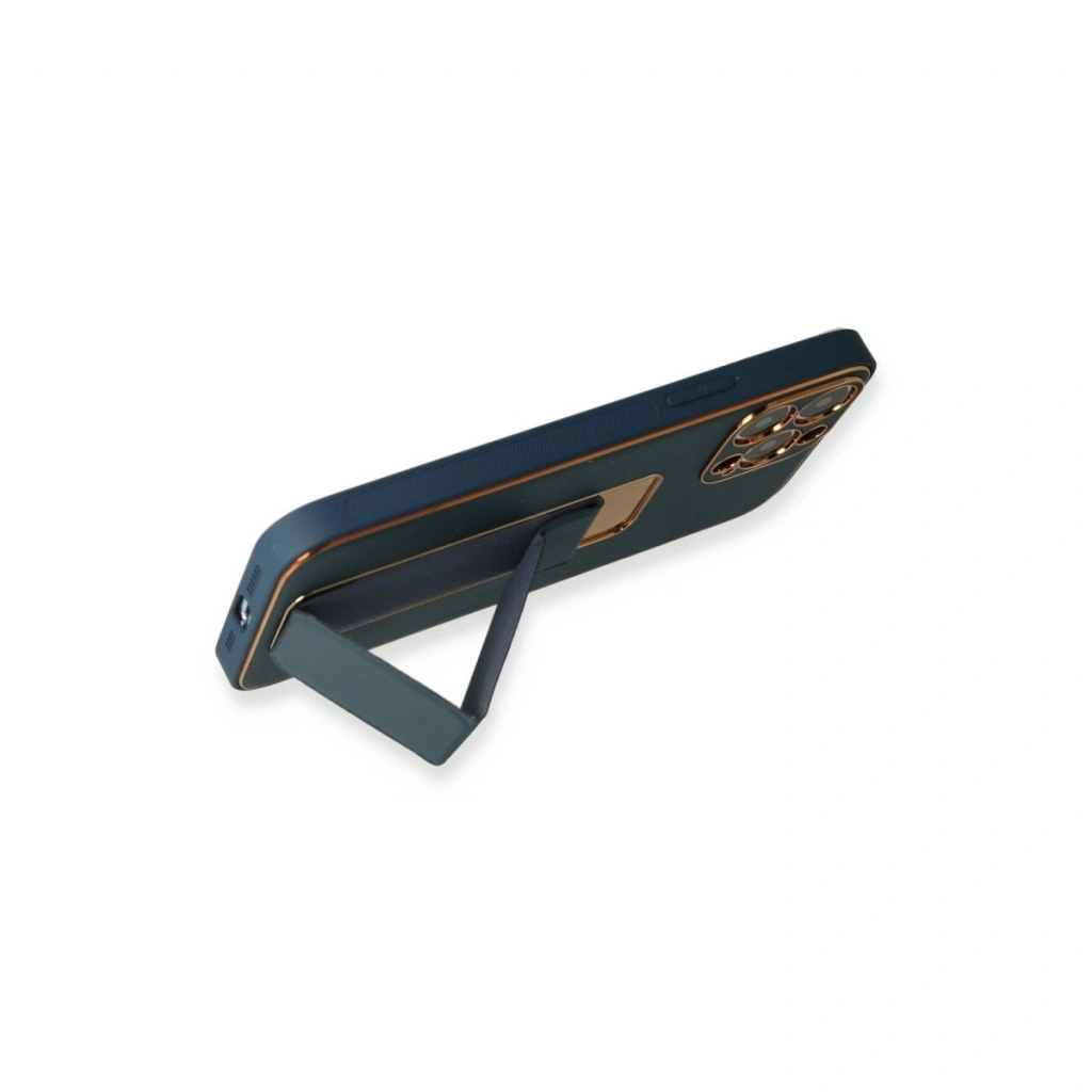 HERŞEYTREND Apple İphone 13 Pro Kılıf Coco Deri Standlı Kapak - Mavi