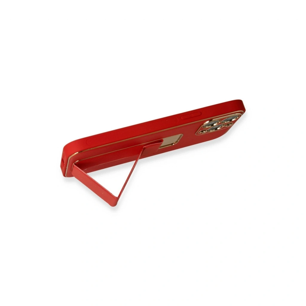 HERŞEYTREND Apple İphone 13 Pro Max Kılıf Coco Deri Standlı Kapak - Kırmızı