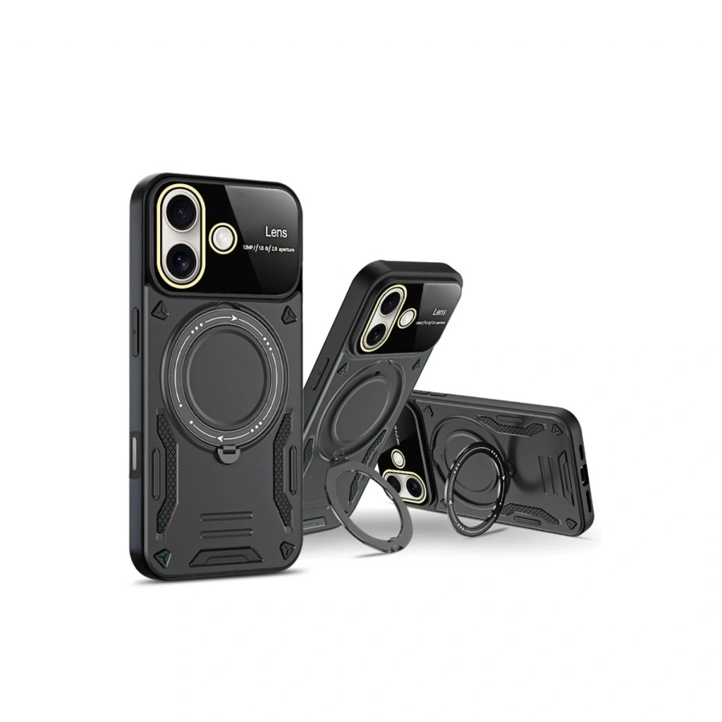 HERŞEYTREND Apple İphone 16 Kılıf Joy Lens Standlı Kapak - Siyah