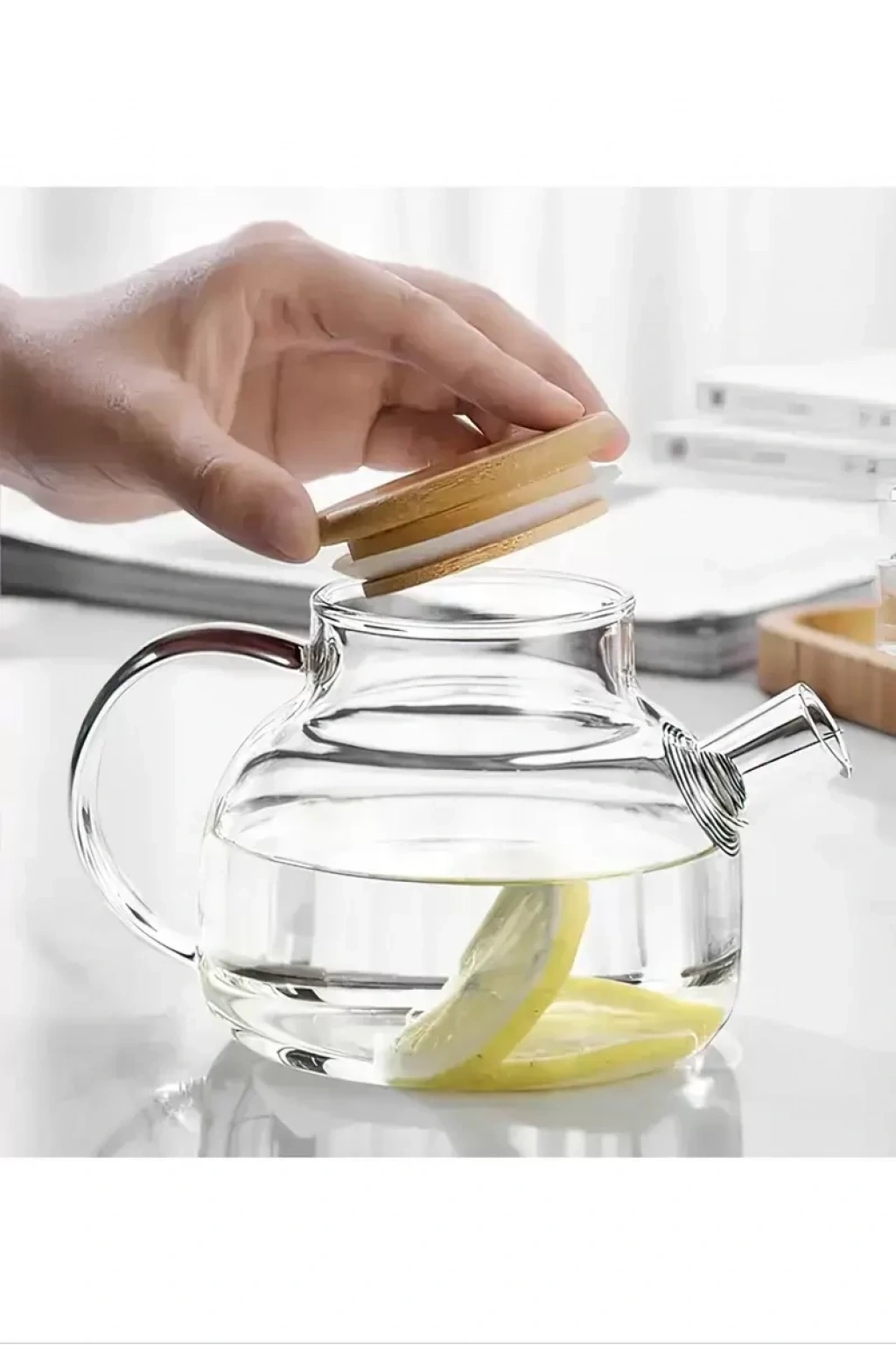 Paket İçeriği : 1 adet Bambu Kapaklı Borosilikat Cam Demlik 1000ml Royaleks-CM-2000