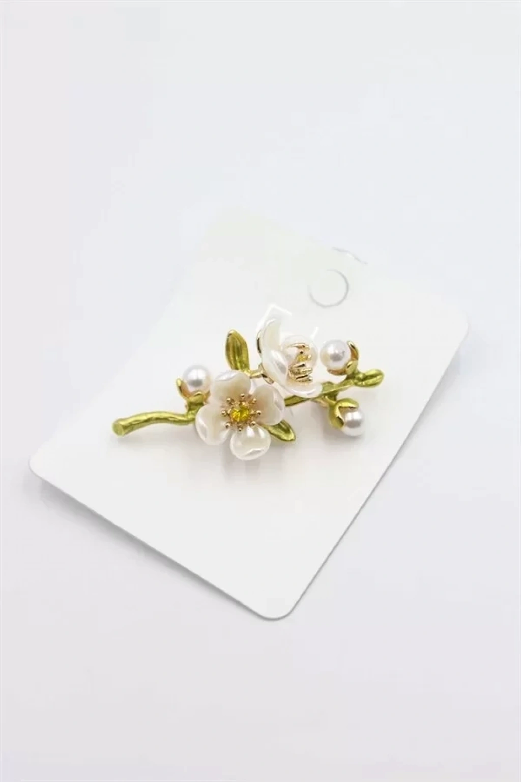 HERŞEYTREND Çiçek Dalı Broş - Beyaz