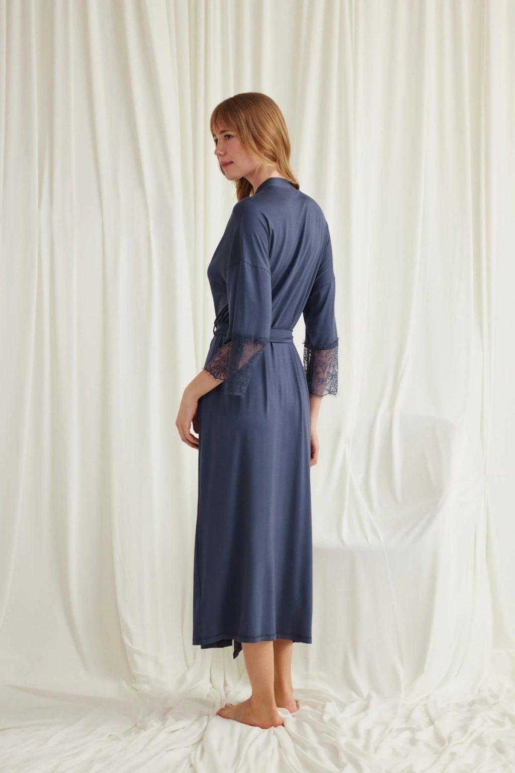 Sabahlık: Lacivert renklidir, kol ağzı dantellidir, truvakar kolludur, kuşaklıdır, örme kumaştır.
