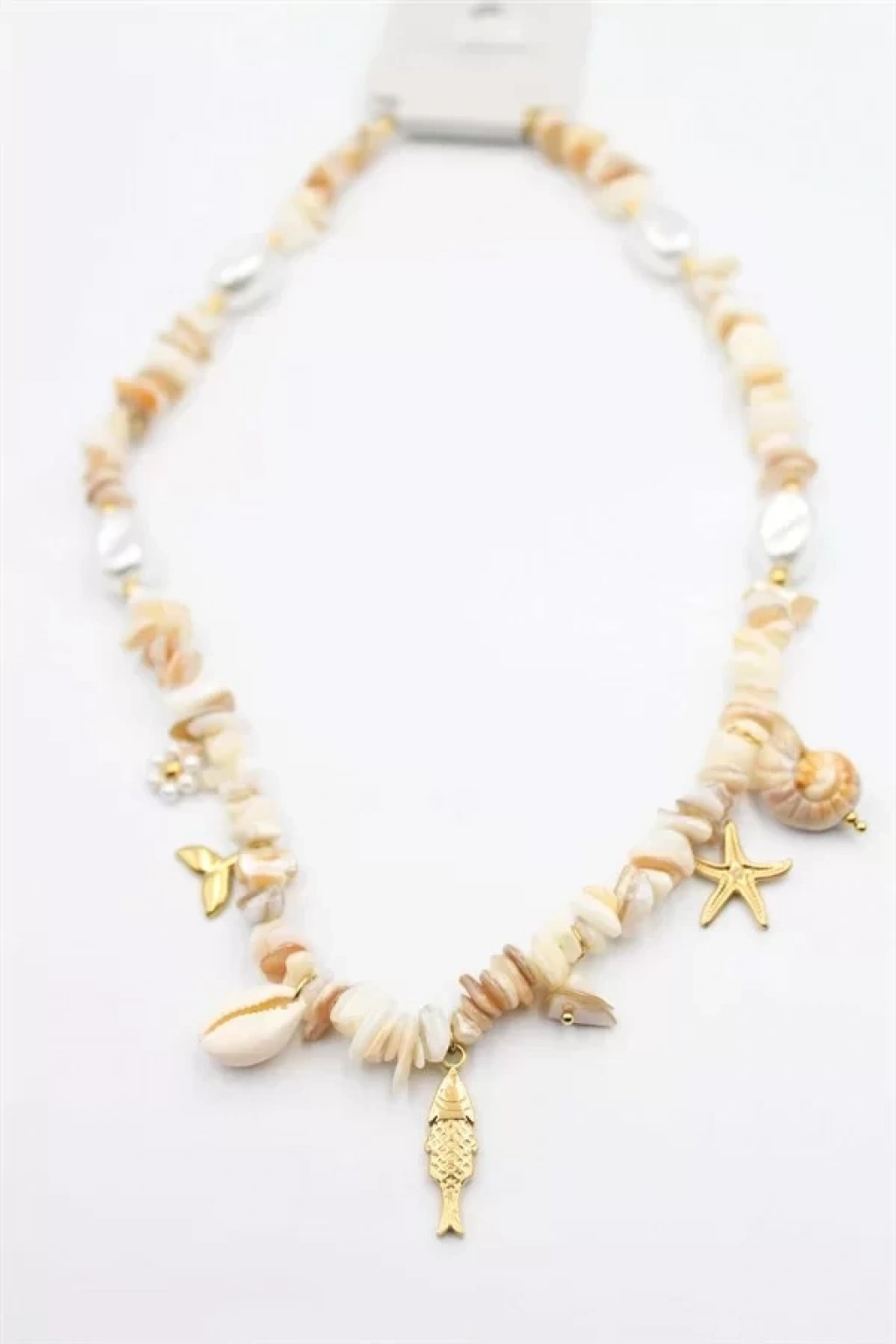 HERŞEYTREND Doğal Taş Kolye - Krem