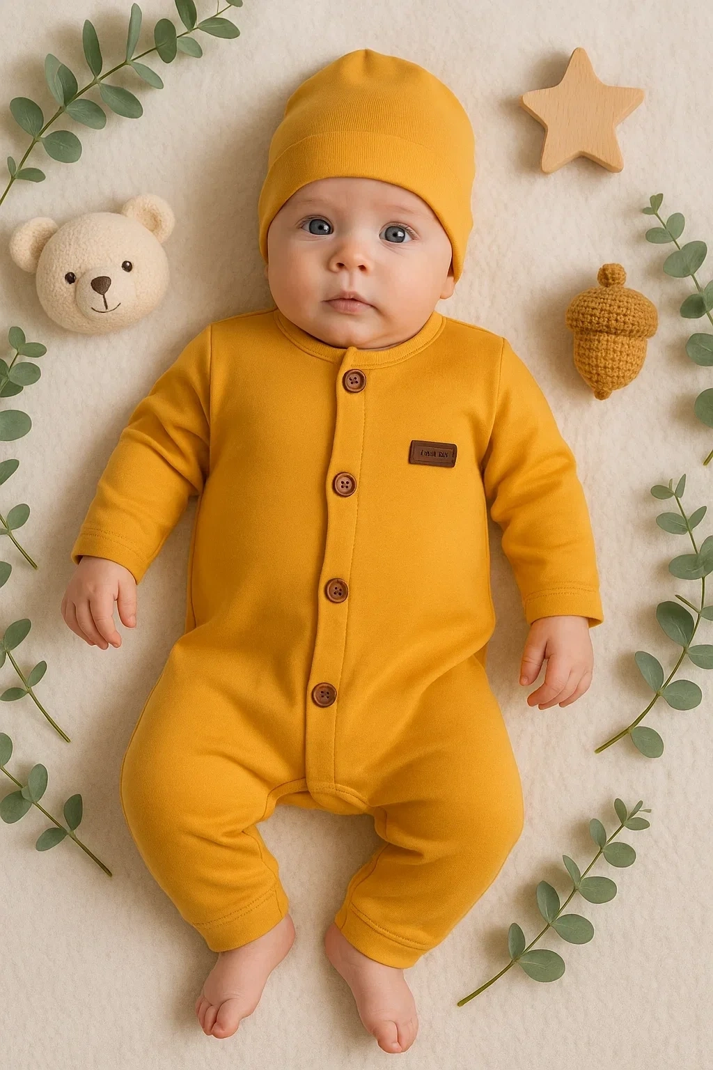HERŞEYTREND The Bear Desenli % 100 Pamuk Şapkalı Tulum