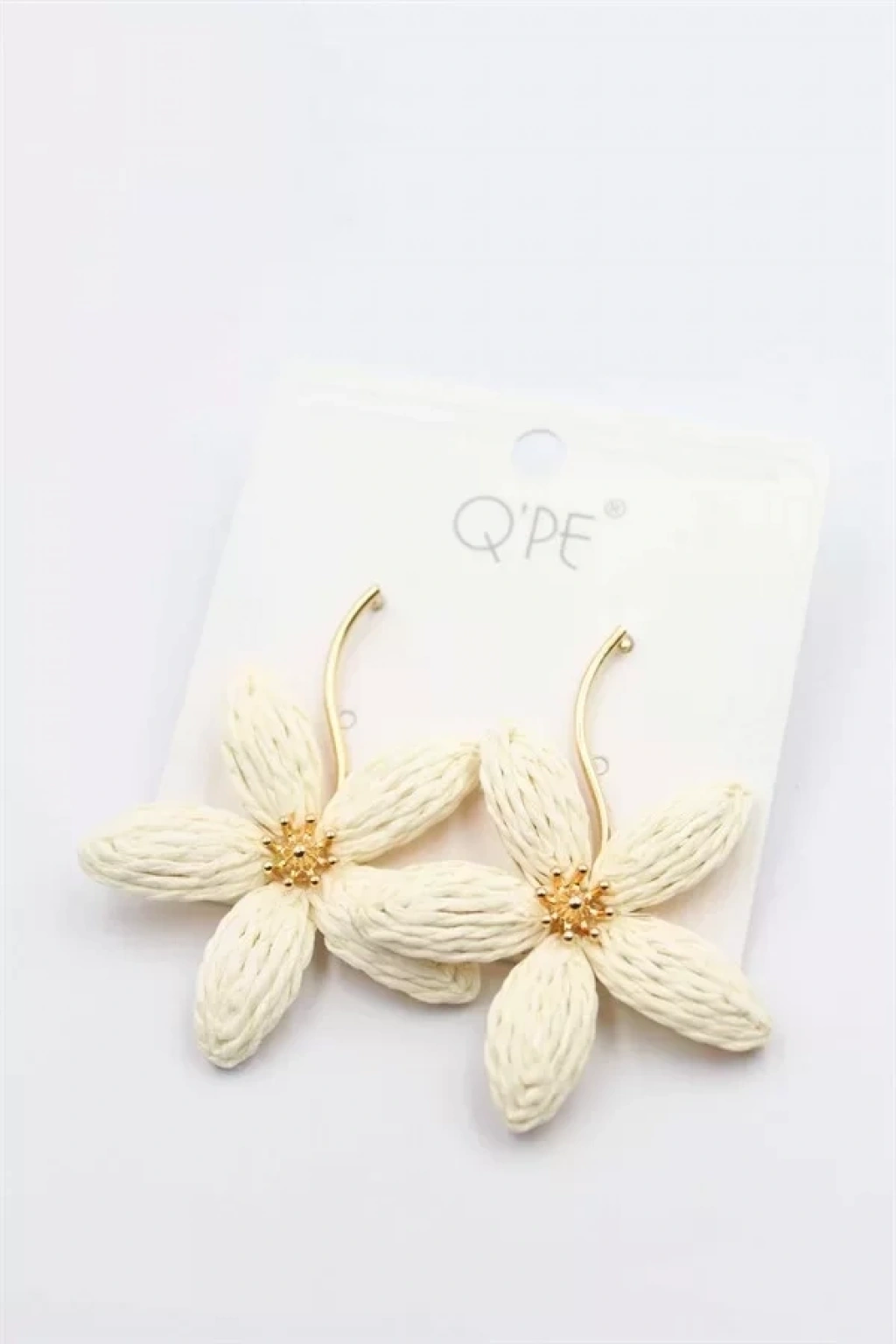 HERŞEYTREND Hasır Çiçek Küpe - Krem