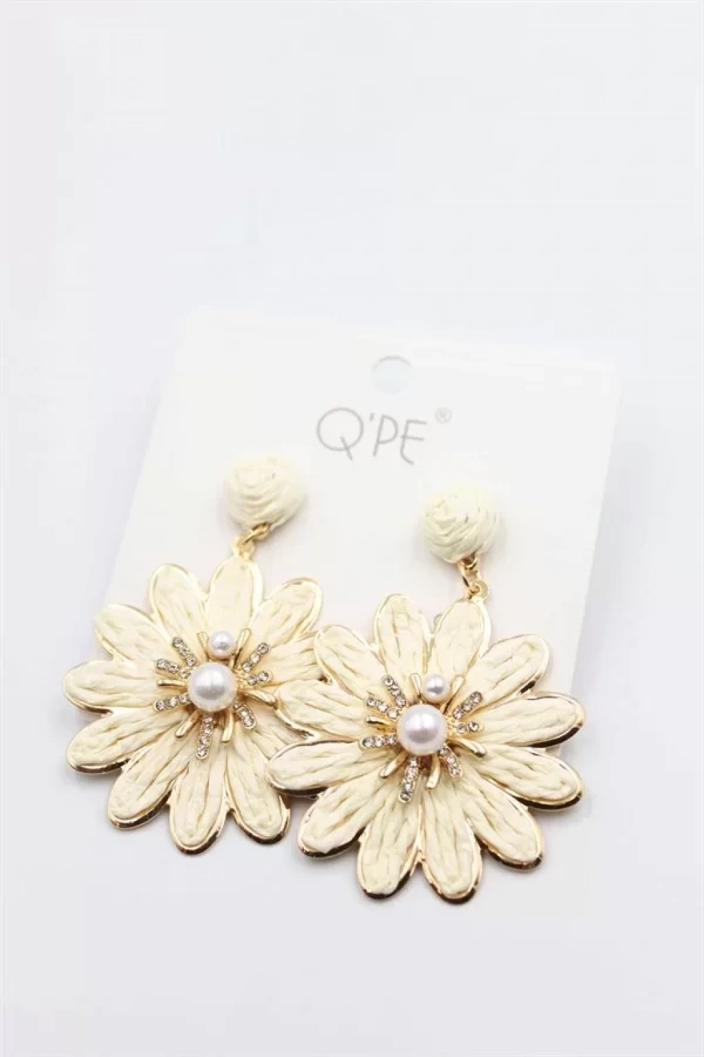 Hasır Çiçek Küpe - Krem