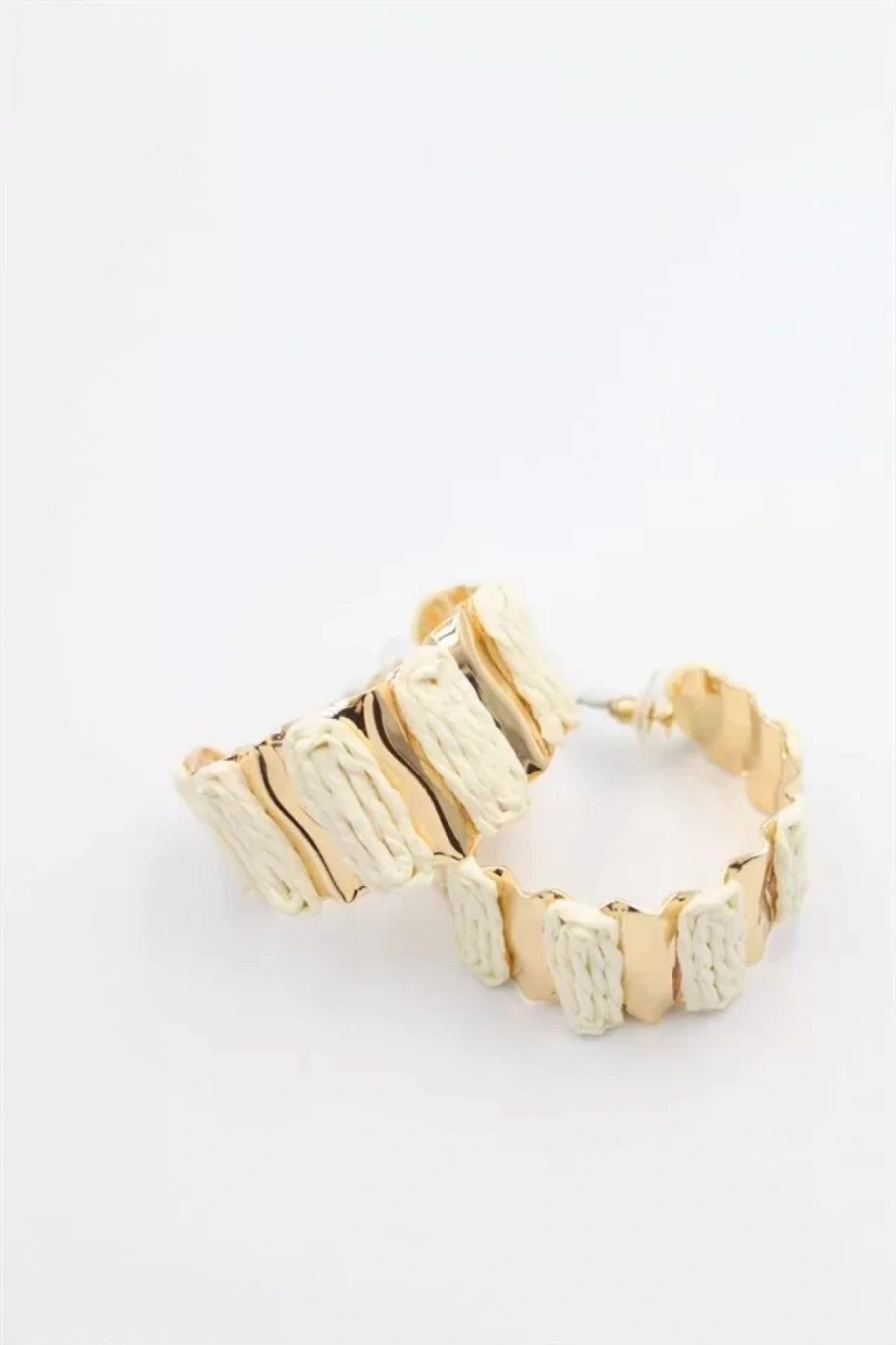 HERŞEYTREND Hasır Halka Küpe - Krem