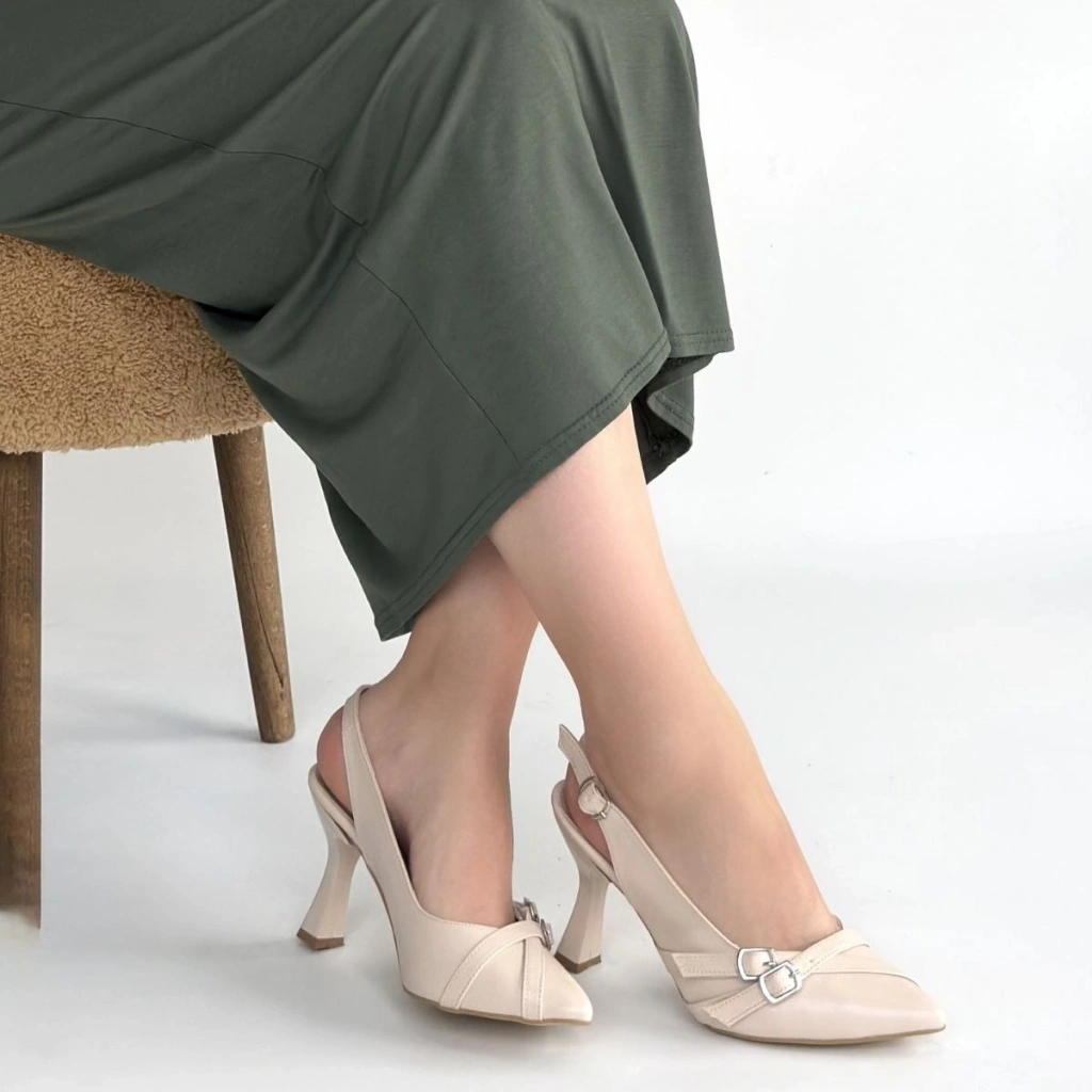 HERŞEYTREND Jedda Bej Cilt Topuklu Ayakkabı