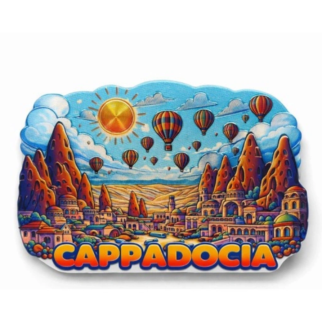 KAPADOKYA TEMALI SİLİKON BUZDOLABI MAGNETİ MODEL 5Kapadokya temalı silikon buzdolabı magneti, peribacalarının mistik havasını ve gökyüzünü süsleyen meşhur sıcak hava balonlarını yaşam alanlarınıza taşıyor. "Model 5" serisinin canlı renkleri ve detaylı desenleri, Kapadokya’nın eşsiz coğrafyasını buzdolabınızda veya metal yüzeylerinizde canlandırır. Yumuşak silikon yapısı sayesinde dayanıklılığı estetikle buluşturan bu magnet, sadece bir dekorasyon objesi değil, aynı zamanda Kapadokya’nın büyüleyici ruhunu yansıtan kalıcı bir hatıradır.Öne Çıkan ÖzelliklerCanlı ve Detaylı Görsel Tasarım: Kapadokya’nın balonlu manzarasını yüksek baskı kalitesiyle sunar; renkler canlılığını uzun süre korur ve solma yapmaz.Esnek Silikon Malzeme: Kırılmaya karşı dirençli yumuşak silikon yapısı, magnetin düşmelere karşı dayanıklı olmasını ve formunu uzun yıllar muhafaza etmesini sağlar.Güçlü Manyetik Tutuş: Arka yüzeyindeki kuvvetli mıknatıs, notlarınızı, fotoğraflarınızı veya alışveriş listelerinizi metal yüzeylere güvenle sabitler.İdeal Boyut (8,3x6 cm): Kompakt boyutları sayesinde yüzeylerde kalabalık yaratmadan estetik bir odak noktası oluşturur.Güvenli Kullanım: Keskin kenarları yoktur; bu sayede buzdolabı yüzeyini çizmez ve çocuklar için güvenli bir dekoratif üründür.Turistik ve Anlamlı Hediye: Kapadokya seyahatinizi ölümsüzleştirmek veya sevdiklerinize anlamlı bir hatıra bırakmak için mükemmel bir turistik hediyelik alternatifidir.Kullanım AlanlarıMutfak Dekorasyonu: Buzdolabı kapağını Kapadokya’nın eşsiz silüetiyle süslemek ve notlarınızı asmak için.Ofis ve Çalışma Alanları: Metal dosya dolaplarında veya manyetik panolarda düzenleyici ve dekoratif bir aksesuar olarak.Koleksiyon: Şehir ve bölge temalı magnet biriktirenler için serinin en renkli parçalarından biri olarak.Teknik Özellikler TablosuÖzellikDetayÜrün AdıKapadokya Temalı Silikon MagnetModelModel 5MalzemeEsnek ve Dayanıklı Yumuşak SilikonBoyut8,3 x 6 cmTemaKapadokya (Sıcak Hava Balonları ve Peribacaları)Bağlantı TipiGüçlü Arka MıknatısPaket İçeriği1 Adet Kapadokya Temalı Silikon Magnet