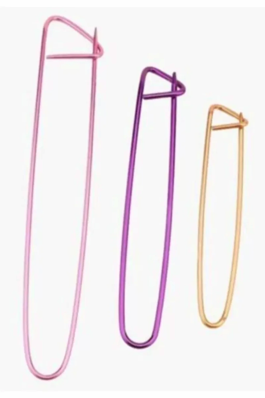 Örgü İlmek ayracı 3 lü Paket içerisinde 3 farklı boyda ilmek toplayıcı mevcuttur. Örgüyü sökmeden kaçan imleği kurtarmak için kullanılır. Küçük Boy:2x8,5cm Orta Boy:2,4x11,5cm Büyük Boy:2,7x14,5cm