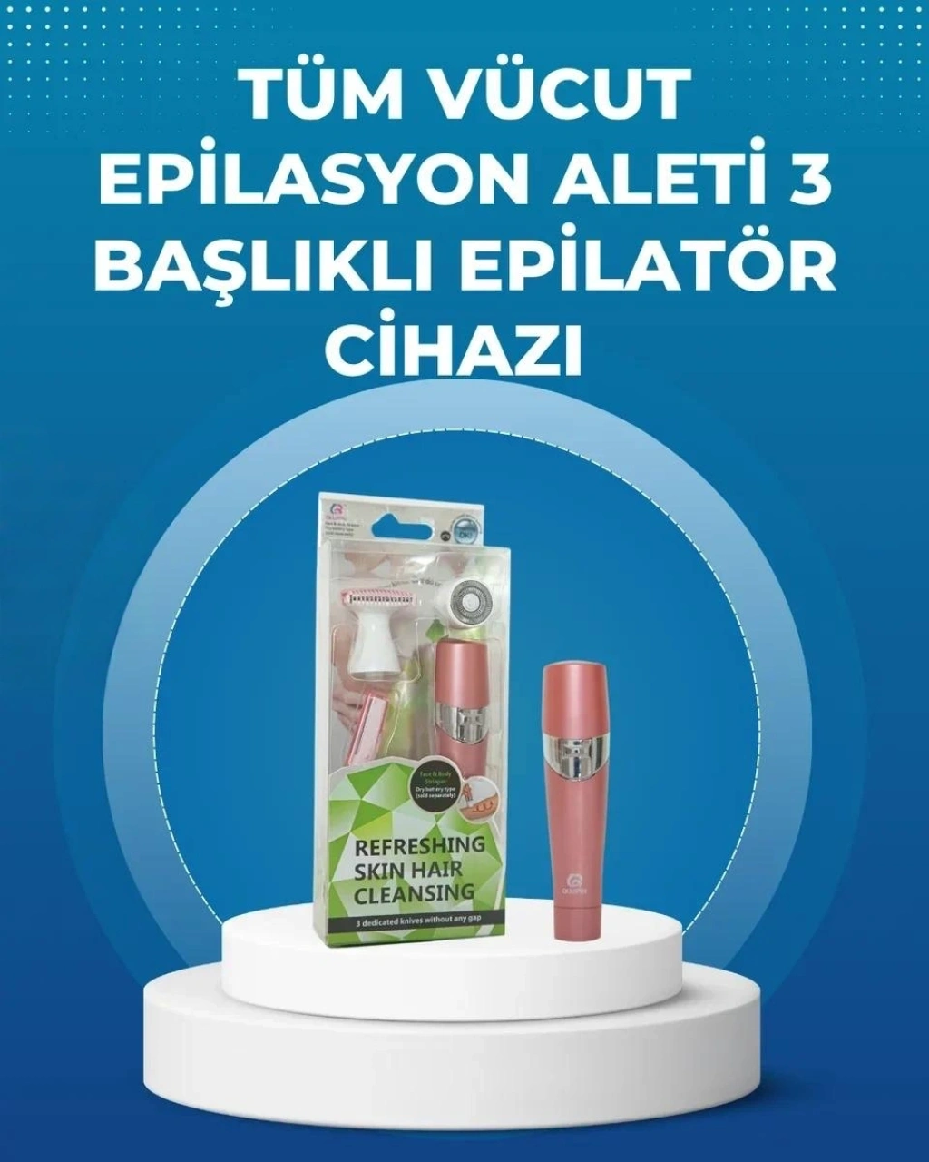 Bu taşınabilir epilasyon aleti, hızlı ve etkili bir şekilde pürüzsüz bir cilt sunar. 3 başlıklı yapısı sayesinde yüz, kol, bacak, bikini ve koltuk altı gibi bölgelerde kullanılabilir. Yüz başlığı, en ince tüyleri bile algılar; vücut başlığı geniş alanlarda kısa sürede sonuç verir; hassas bölge başlığı ise maksimum güvenlik sağlar. Kuru ve ölü deriyi temizleyerek cildin yenilenmesine yardımcı olur. Acı ve tahriş olmadan tüyleri alır. Kompakt boyutu sayesinde seyahatlerde çantanıza kolayca sığar. Düzenli kullanımda cildin yumuşaklığını korur.