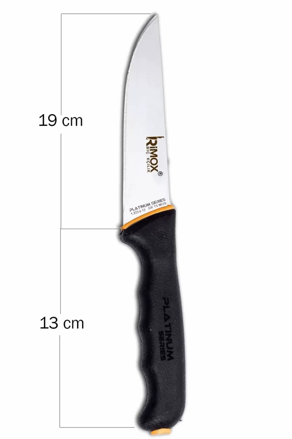 BIÇAK AĞIZ BOYU: 19 cm SAP BOY:13 cm ÇELİK KALINLIĞI: 3 mm ÇELİK KALİTESİ: DX T5 MOS Çubuk Paslanmaz PLASTİK SAP : FİBROX + TERMO PLASTİK