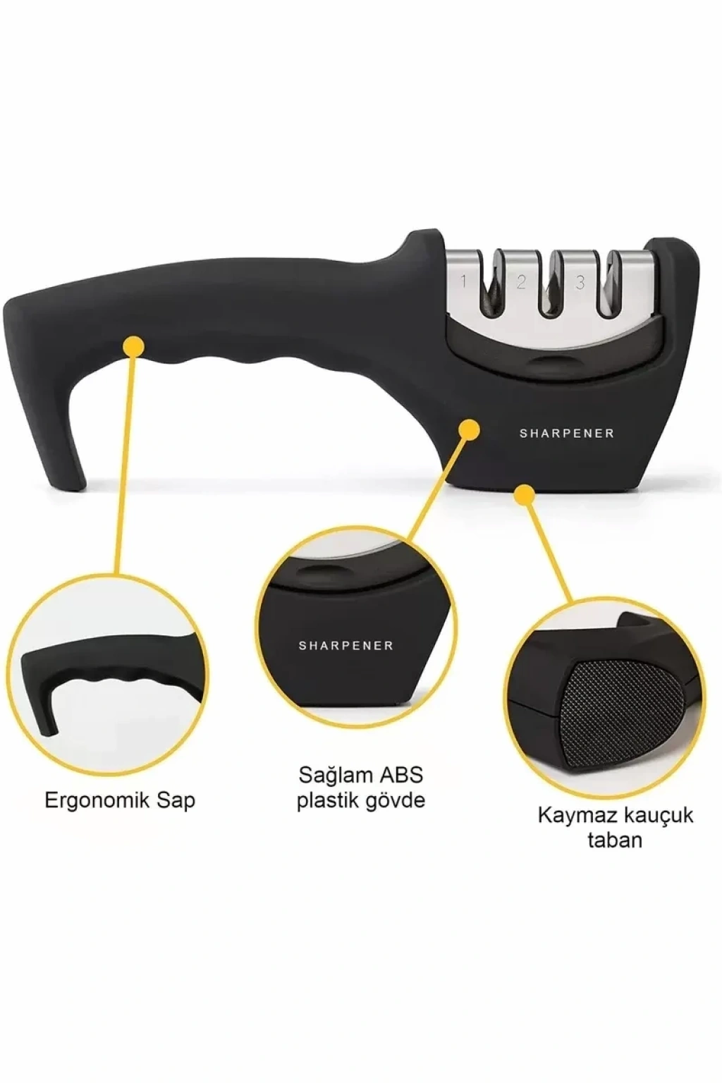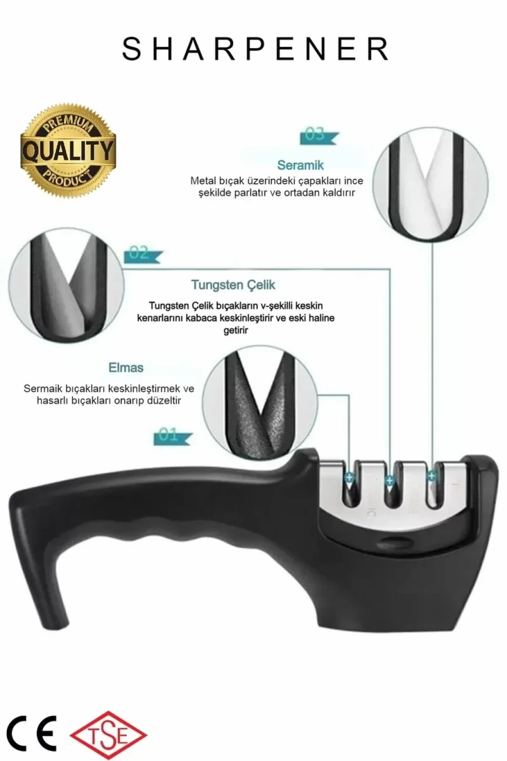 | Profesyonel bıçak bileyici 3 açılı elmas seramik tungsten çelik el bıçakları bileme. Mutfak bıçağı bileyici - 3 aşamalı bıçak aksesuar bileme aracı 3 adımlı bıçak bileme sistemi: Inanılmaz 3 yuvalı sistemimizle bıçak bileme sanatında devrim yaratıyoruz! Bıçağı yuvaların her birine yerleştirin ve hızlı ve etkili bir keskinleştirme için bıçağı birkaç kez yavaşça çekin. |