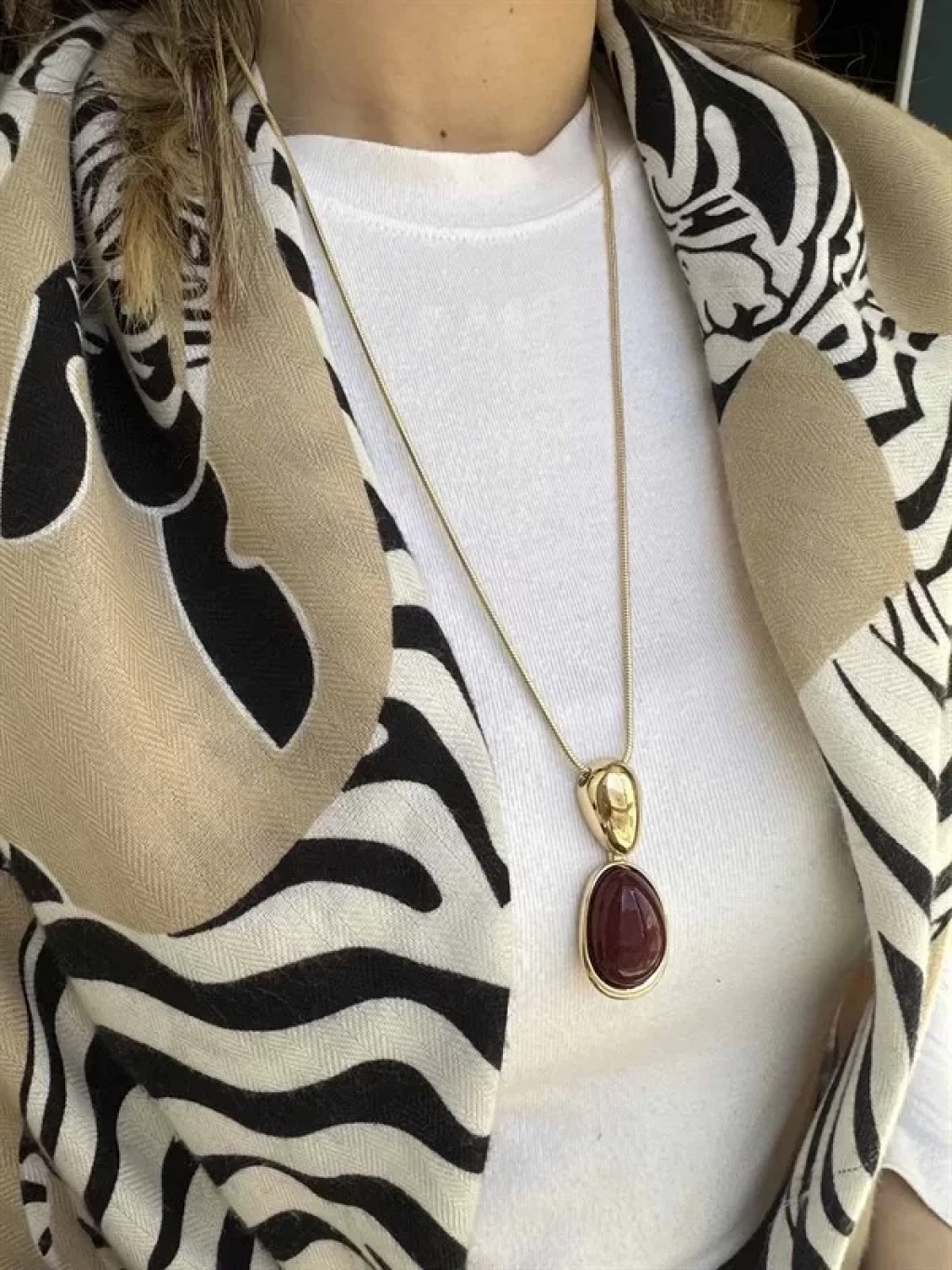 HERŞEYTREND Taşlı Kolye - Kahverengi
