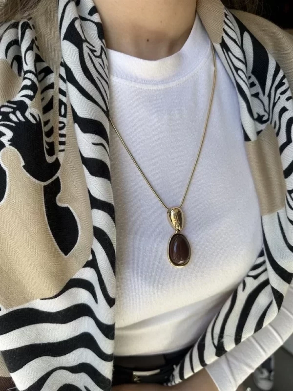 HERŞEYTREND Taşlı Kolye - Kahverengi