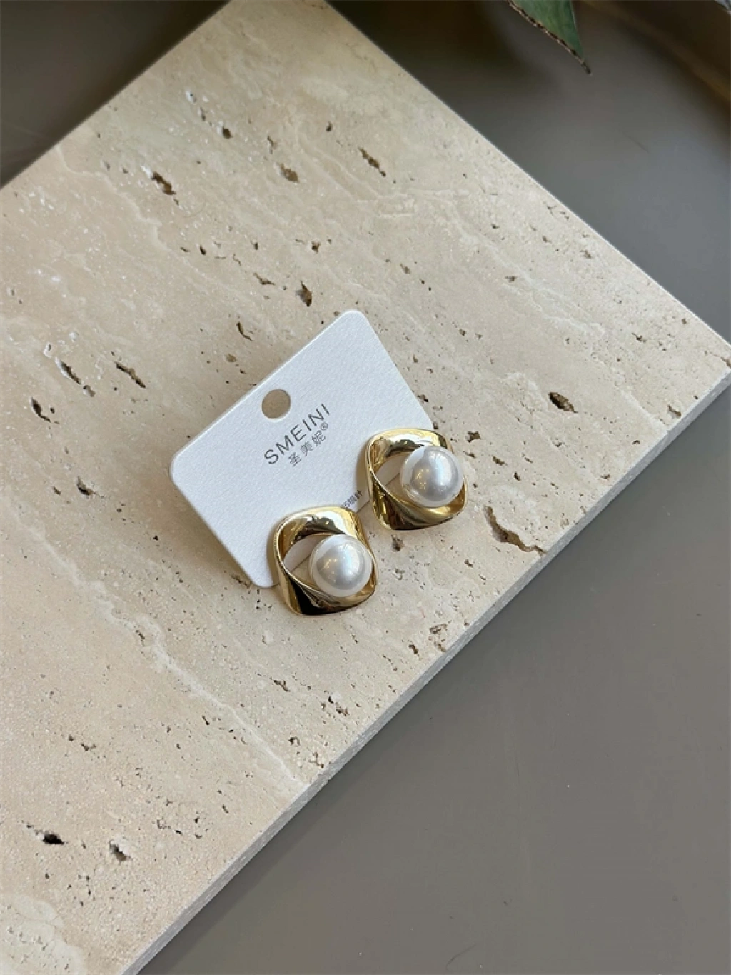 HERŞEYTREND Taşlı Küpe - Krem