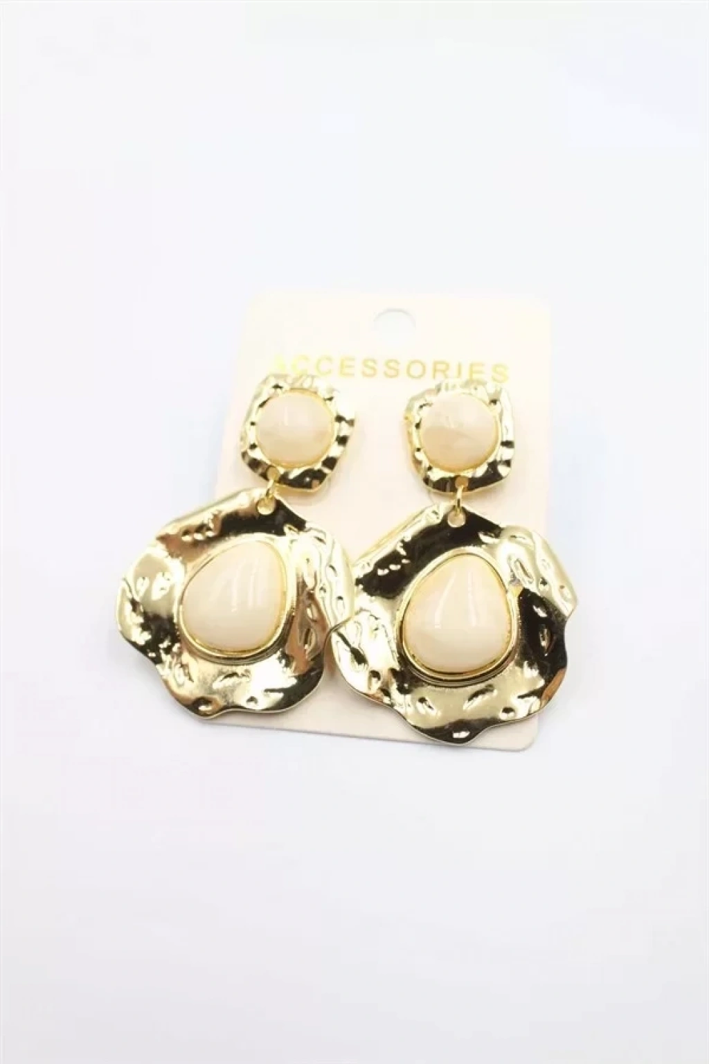 Taşlı Küpe - Krem