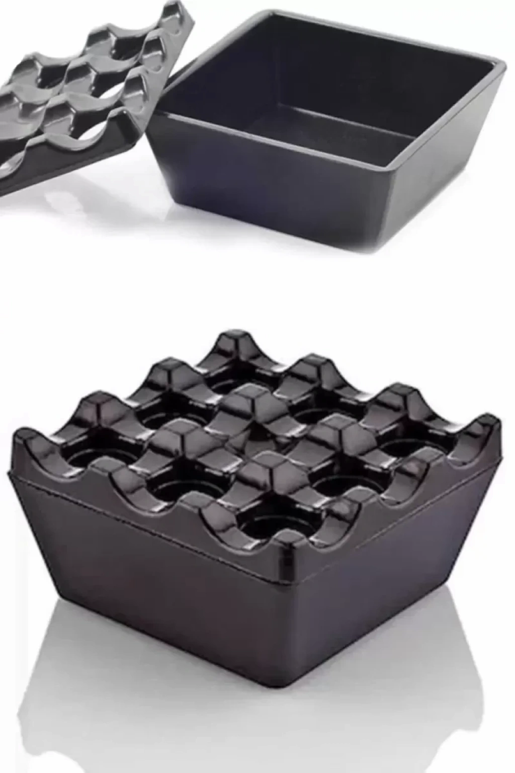 Küllük Izgaralı Kare Izgara Küllük Siyah Melamin Kül Tablası Kafe, Bahçe, Restoran Kullanıma Uygundur. Tarzıyla Şık Bir Görsel Sunar, 9 Delik Mevcuttur. Ürünün Boyutu: Yükseklik: 4Cm x Üst Genişlik:8.3 Cm x Alt Taban Genişliği: 7 Cm