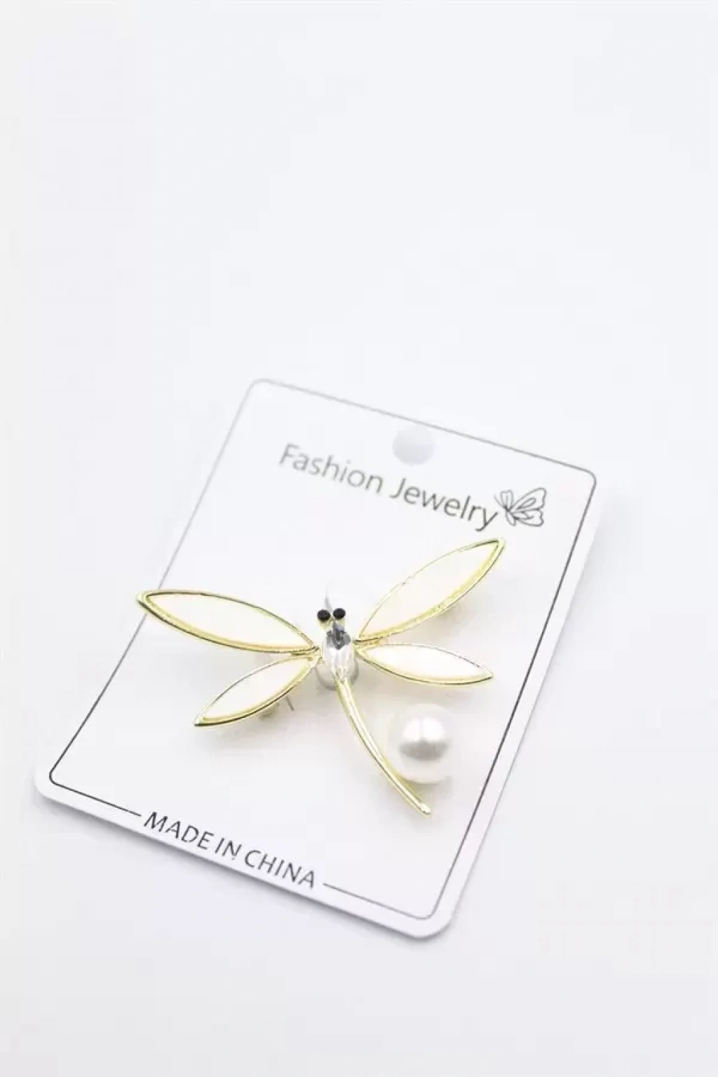 HERŞEYTREND İncili Düğme Broşu - Altın