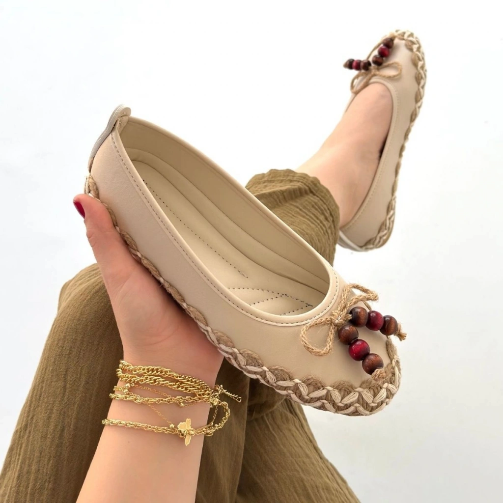 HERŞEYTREND Ilwe Bej Cilt Babet Ayakkabı
