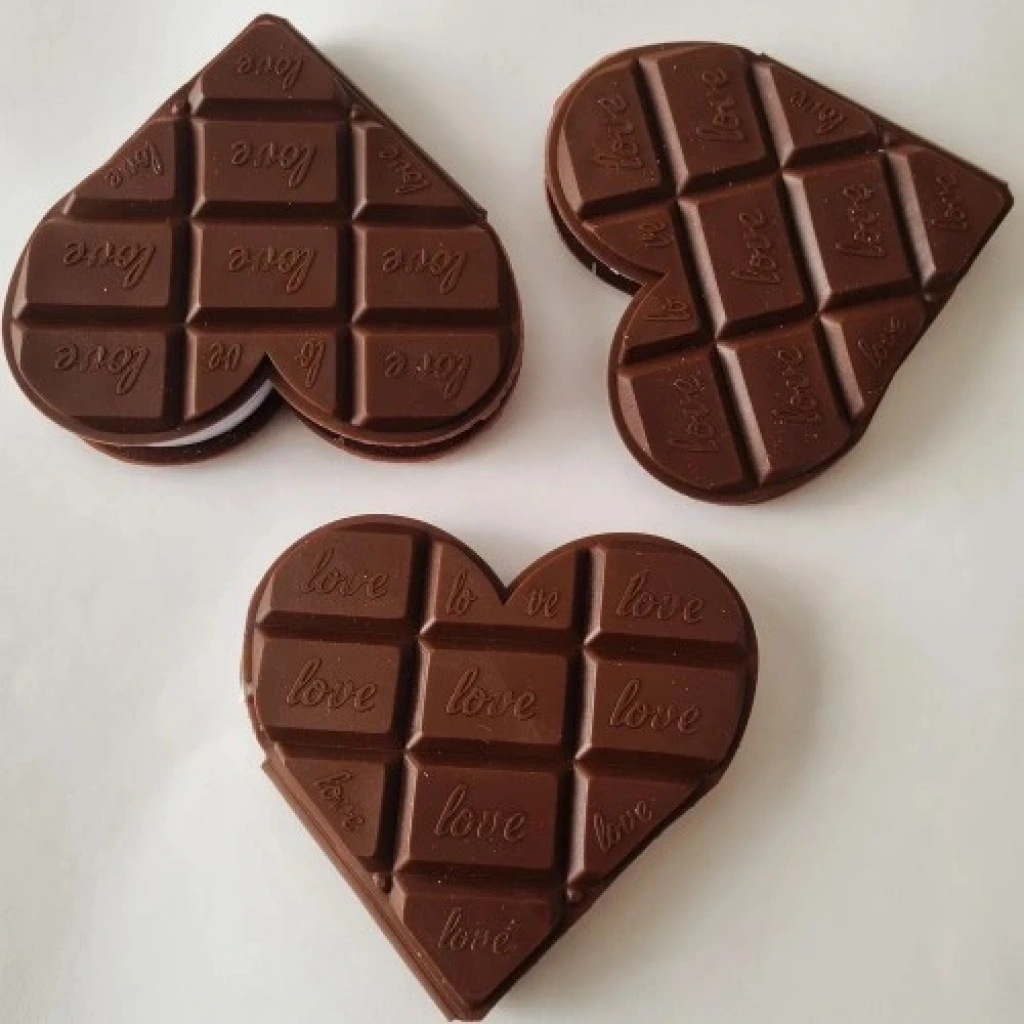 Kalp Tasarımlı Çikolata Not DefteriKalp tasarımlı çikolata kokulu not defteri tasarımı ve görünümü ile herkesin ilgisini çekeceği bir defter.Kalp Çikolata şeklinde not defteri çikolata bağımlıları için vazgeçemeyecekleri bir not defteri olacak gördüğünüz ilk anda içinizden ısırmak isteği gelecek.Belki şiir ya da öykü yazıyorsunuz belki günlük tutuyorsunuz belki de ilgi alanınızla alakalı gördüklerinizi duyduklarınızı not alıyorsunuz ve özel bir defter arayışındasınız.Çikolatayı da seviyorsanız Çikolata Not Defterini de seveceğinize eminiz.İlk bakışta arasında kreması olan koca bir çikolata sanabileceğiniz Chocolate Notebook en güzel anılarınızı en tatlı notlarınızı saklamak için birebir.Yaklaşık 100 sayfalık Çikolata Not Defteri lezzetli görüntüsüyle dikkat çekmektedir.Çizgisiz Defter, Kalp Şeklinde Çikolata Defter, Çikolata Görünümlü Kokulu Not Defteri Ürün Özellikleri:* Çikolata Not Defteri en önemli notlarınızı içinde saklıyabileceksiniz.* Sıra dışı farklı tasarımıyla dikkat çekmektedir.* Kalp tasarımı ile çikolata defter görünüm şıklığı.* Çikolata Not Defteri Kokuludur.* Ürünün dış kapağı plastik malzemeden üretilmiştir.* Ortalama 50-70 yaprak arası (100 sayfa)Ürün Ölçüsü : 9 cm x 8.5 cm