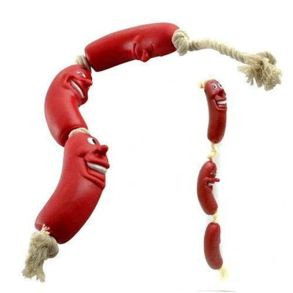 KÖPEKLER İÇİN OYUNCAK SOSİSKöpekler İçin Oyuncak Sosis, sevimli dostlarımızın asla vazgeçemeyeceği bir ürün !Sevimli dostlarımız, enerjilerini Köpekler İçin Tasarlanmış Oyuncak Sosis ile atacak !Eğitim amaçlı da kullanılabilen, Köpekler İçin Oyuncak Sosis, hem sizi hem de sevimli dostlarımızı oldukça eğlendirecek !Köpekler İçin Oyuncak Sosis Ürün ÖzellikleriKöpeğinizin çene kaslarını kuvvetlendirir.Eğitim amaçlı kullanılabilir.Köpeğinizin fazla enerjisini atmasına yardım eder. Köpekler İçin Oyuncak Sosis Ürün ÖlçüleriBirbirine bağlı 4 adet sosis 40 cm. Köpekler İçin Oyuncak Sosis Paket İçeriği1 adet birbirine bağlı 4 sosisten oluşan, köpek oyuncağı