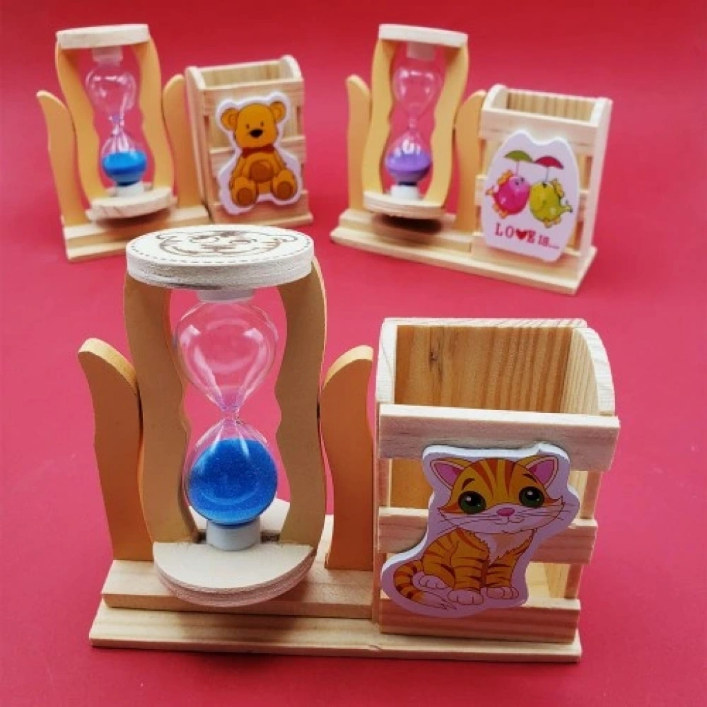 Kum Saati Kalemlik Kutulu Kum Saati Kalemlik Kutulu, hem dekoratif hem de işlevsel tasarımıyla masaüstü düzeninizi şık bir görünüme kavuşturur. Ahşap malzemeden üretilen bu özel kalemlik, üzerinde bulunan kum saati ile masanıza nostaljik ve estetik bir hava katar. Kum saatinin 3 farklı kum rengi bulunmakta olup ürün karışık modellerde gönderilmektedir.Masaüstü kullanımı için ideal olan kum saati kalemlik, hediye olarak da tercih edilebilecek zarif bir tasarıma sahiptir.Kum Saati Kalemlik, Ahşap Kalemlik, Masaüstü Dekor Ürün Özellikleri:Ürün ahşap malzemeden üretilmiştir.Kum saatinin 3 farklı kum rengi bulunmaktadır.Karışık modellerde gönderilmektedir.Masaüstü düzenleyici ve dekoratif bir üründür.Ürün Ölçüsü:13.5 cm x 4.5 cm x 10 cm