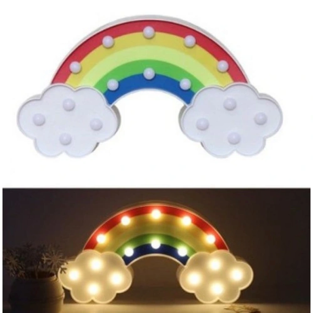 Led Işıklı Gökkuşağı Gece LambasıÜrün Açıklaması:Odanıza neşe ve renk katmak için tasarlanan Led Işıklı Gökkuşağı Gece Lambası, hem dekoratif hem de işlevsel bir aydınlatma ürünüdür. Gökkuşağı tasarımıyla çocuk odalarına, yatak odalarına veya yaşam alanlarınıza sıcak ve huzurlu bir atmosfer kazandırır. Gün ışığı tonundaki LED aydınlatması göz yormaz ve loş bir ortamda hoş bir ambiyans oluşturur.Duvara asılabilir yapısı ve hem dikey hem yatay kullanım imkânı ile istediğiniz şekilde konumlandırabilirsiniz. 2 adet kalem pil ile çalışır ve açma-kapama düğmesi sayesinde pratik bir kullanım sunar.Ürün Özellikleri:Dekoratif LED ışıklı gece lambasıGün ışığı tonunda aydınlatma2 adet kalem pil ile çalışır (piller dahil değildir)Boyut: 30 x 16 cmHem dikey hem yatay kullanımDuvara asılabilir tasarımAçma-kapama düğmesi ile kolay kontrolKullanım Alanları:Çocuk odasıYatak odasıSalon dekorasyonuGece lambası veya ambiyans ışığı olarakPaket İçeriği:1 x Led Işıklı Gökkuşağı Gece Lambası