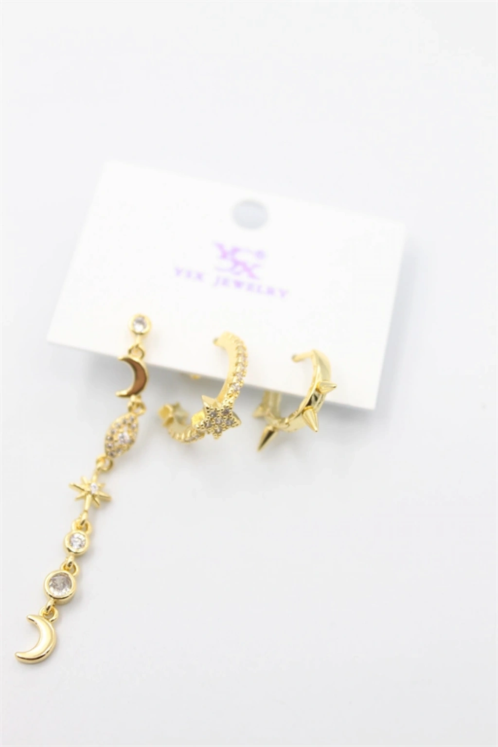 HERŞEYTREND 3'lü Ay Yıldız Küpe - Altın