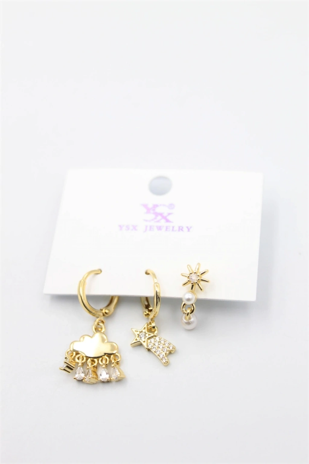 HERŞEYTREND 3'lü Bulut Küpe - Altın