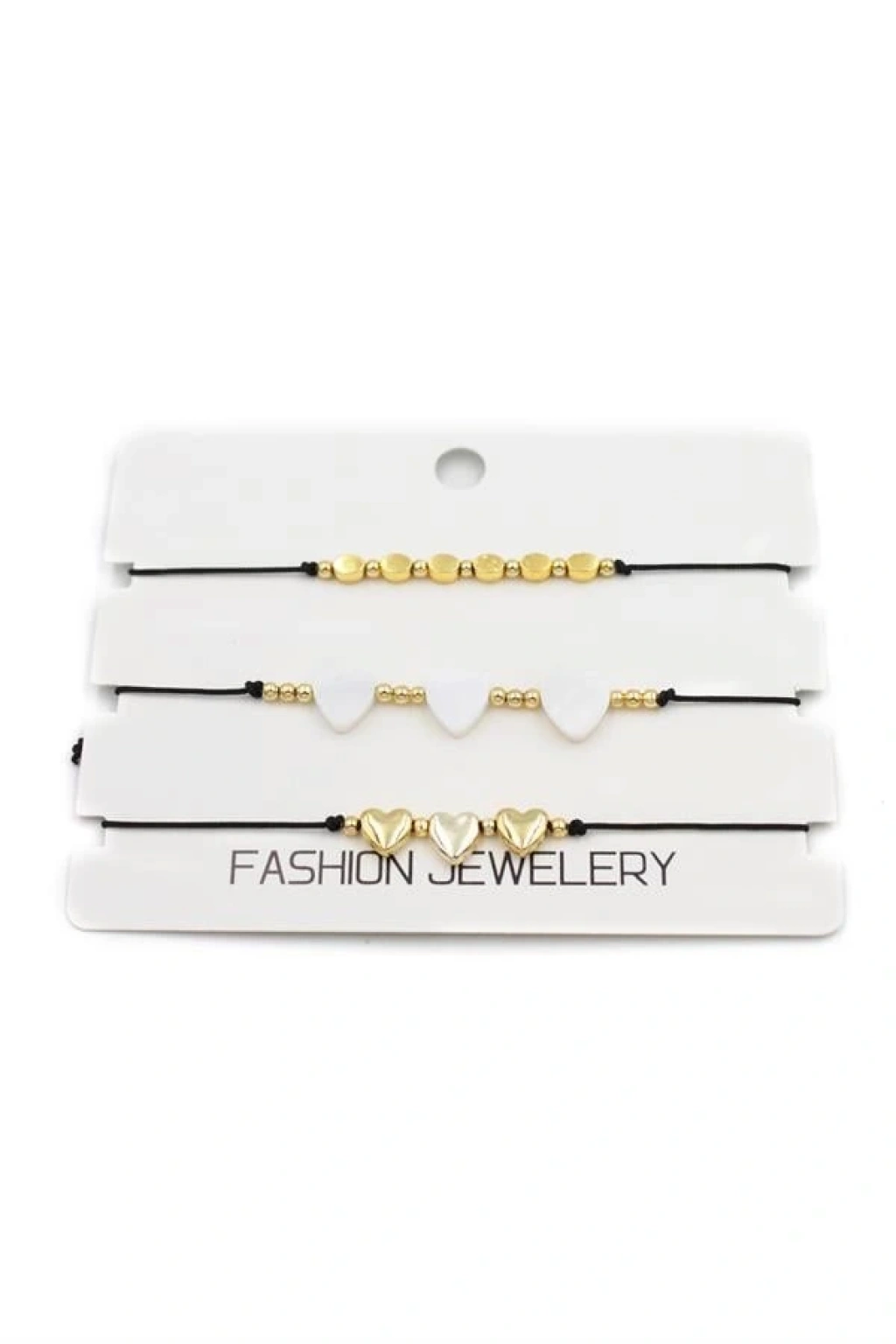 HERŞEYTREND 3'Lü Kalp İp Bileklik - Altın