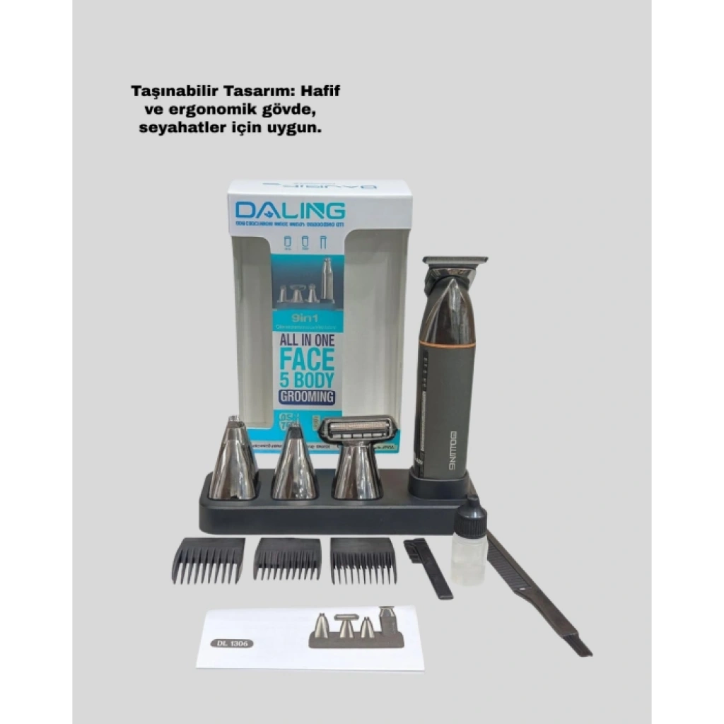 Bu 9’u 1 arada bakım makinesi, güçlü performansı ve çok yönlü yapıdaki başlıkları ile kişisel bakımını en kolay şekilde yapmak isteyen kullanıcılar için geliştirilmiştir. Saç ve sakal kesiminden burun–kulak temizliğine kadar her ihtiyaca tek cihazla çözüm sunar.Paslanmaz çelik bıçak sistemi, keskinliği sayesinde pürüzsüz bir kesim deneyimi sağlar. Güçlü motor yapısı sert tüylerde bile takılma yapmadan performans gösterir. 600 mAh pil kapasitesi tam dolu olduğunda yaklaşık 90 dakika kullanım sunar. USB şarj desteği sayesinde her ortamda şarj edilebilir.Farklı başlık seçenekleri saç, sakal, ense, detay kesimleri ve burun–kulak tüy temizliği için özel olarak tasarlanmıştır. 3–6–9–12 mm saç tarakları ve şakak tarakları farklı uzunluklar elde etmenize yardımcı olur.Yıkanabilir başlıklar hijyenik kullanım sağlar. Hafif tasarımı ve saklama çantası ile seyahatlerde taşınması kolaydır. Evde profesyonel bakım yapmak isteyen herkes için uygundur.