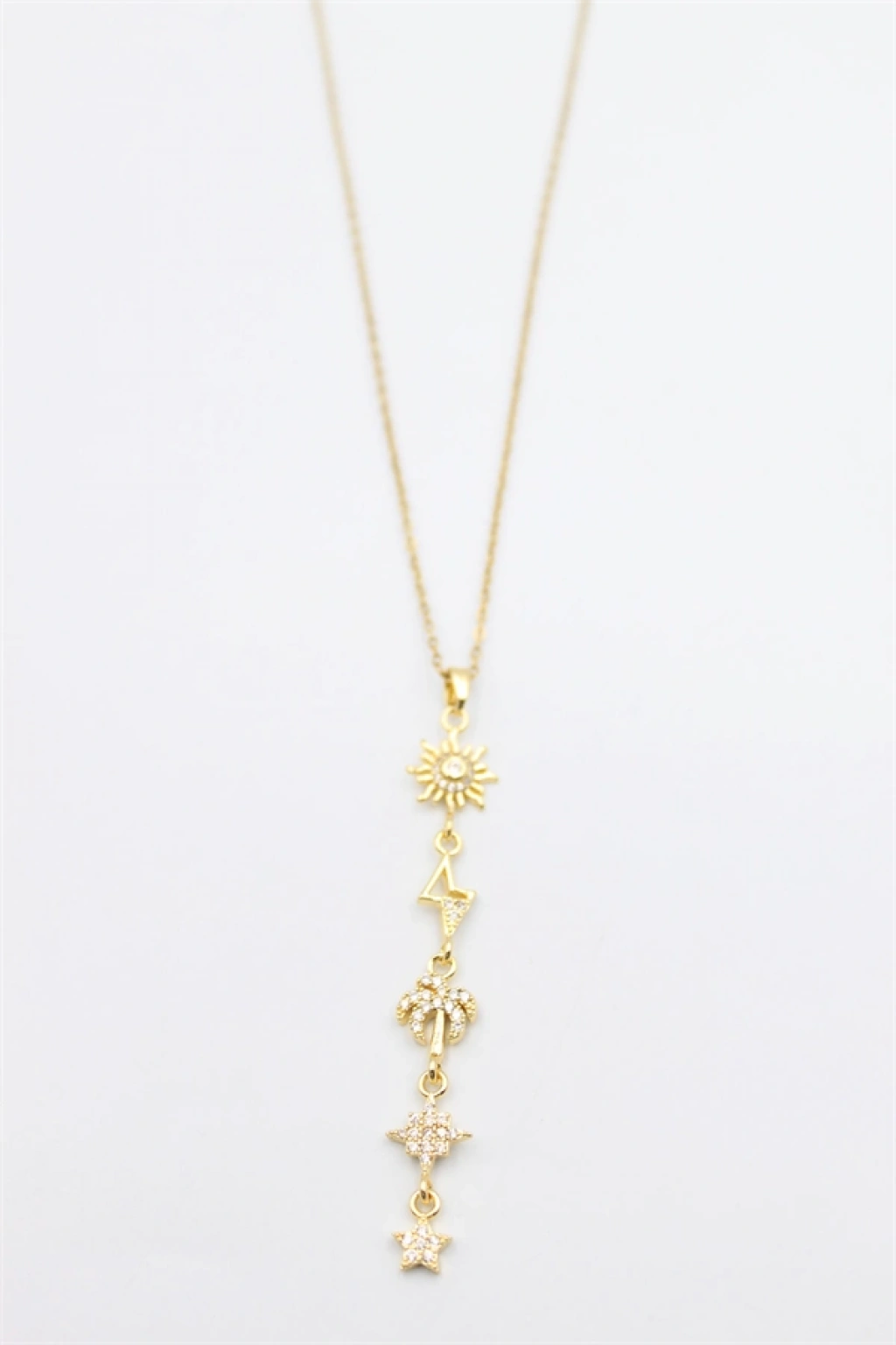 HERŞEYTREND Güneş Yıldız Kolye - Altın