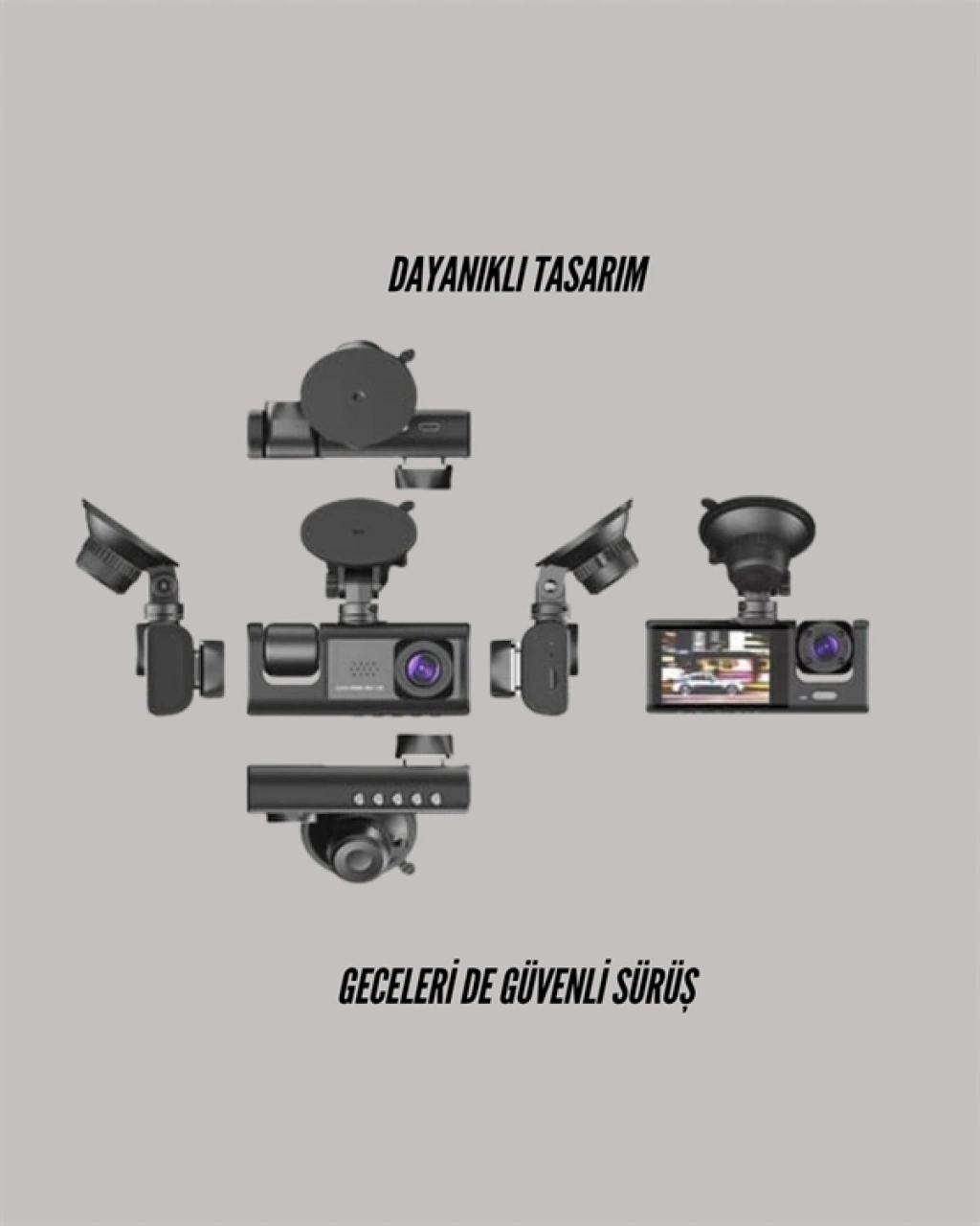 Sürüş güvenliği HTk tek bir kamera ile sınırlı değil. TA-01, önde, içeride ve arkada bulunan üç kamerasıyla sürüşünüzü tam anlamıyla kayıt altına alır.Full HD 1080P çözünürlüklü ön kamera, öndeki trafiği net şekilde yakalarken; 720P çözünürlüklü iç ve arka kameralar, iç yolcu hareketlerini ve arkadan gelen araçları ayrıntılı biçimde gösterir.Gece görüşlü mercekleri, karanlık ortamlarda dahi detaylı görüntü sunarak güvenliğinizi kesintisiz hale getirir.Geniş 170° görüş açısı, kör noktaları minimuma indirir. Yolun kenarları, şerit değişimleri, yayalar ve bisikletliler de kadraja girer.G-sensör özelliği, çarpma ya da ani sarsıntılarda önemli kayıtları korur ve üzerine yazılmasını engeller.Hareket algılama teknolojisi, aracınız park halindeyken bile olaylara müdahale etmenizi sağlar.2 inç LCD ekran, canlı görüntüleme ve geçmiş kayıtları izleme kolaylığı sunar.32 GB Micro SD kart desteği ile sistem uzun süre kayıt tutabilir.Suya ve toza dayanıklı kasası, Torima TA-01’i her mevsimde güvenle kullanılabilir hale getirir.