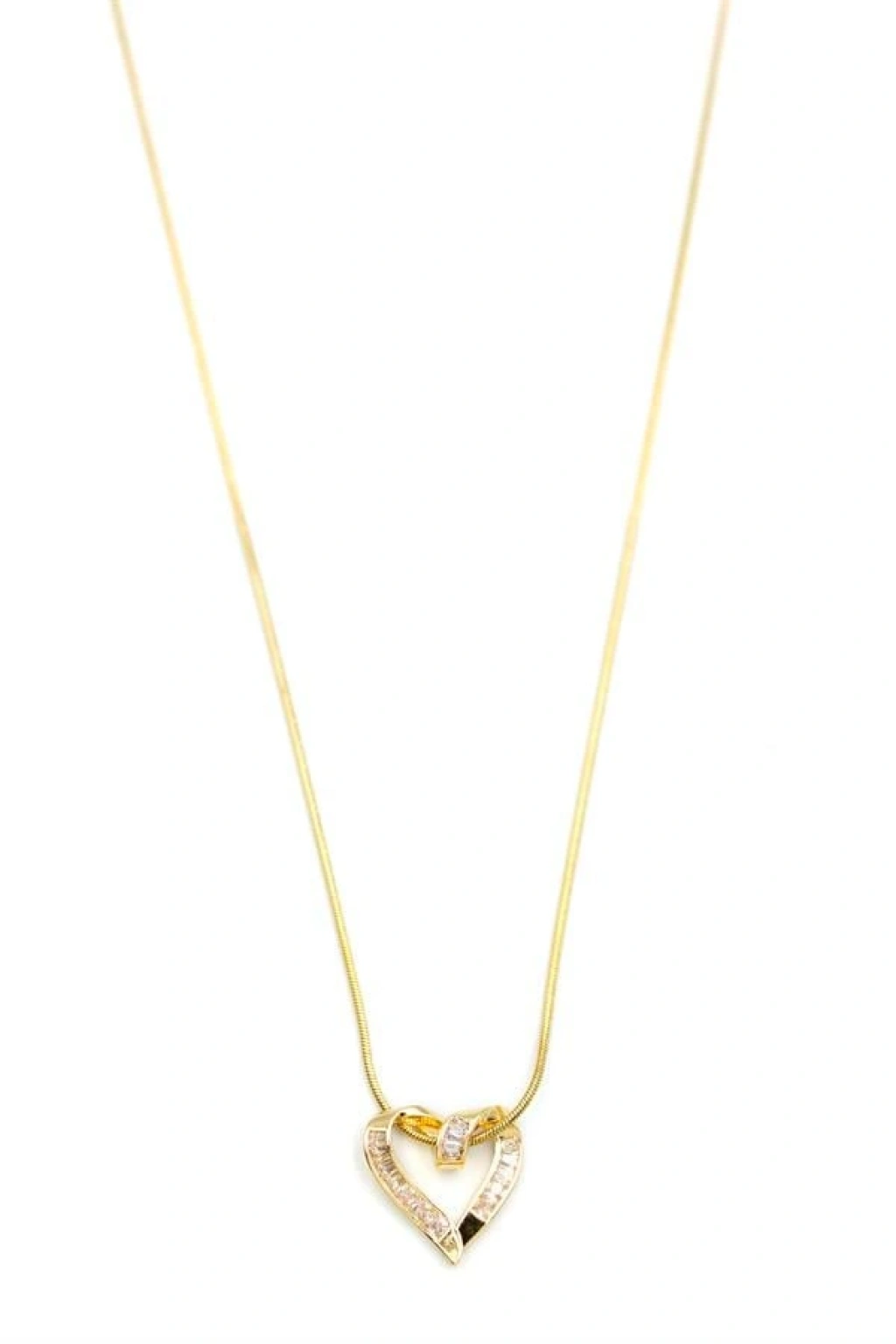 HERŞEYTREND Taşlı Kalp Kolye - Altın