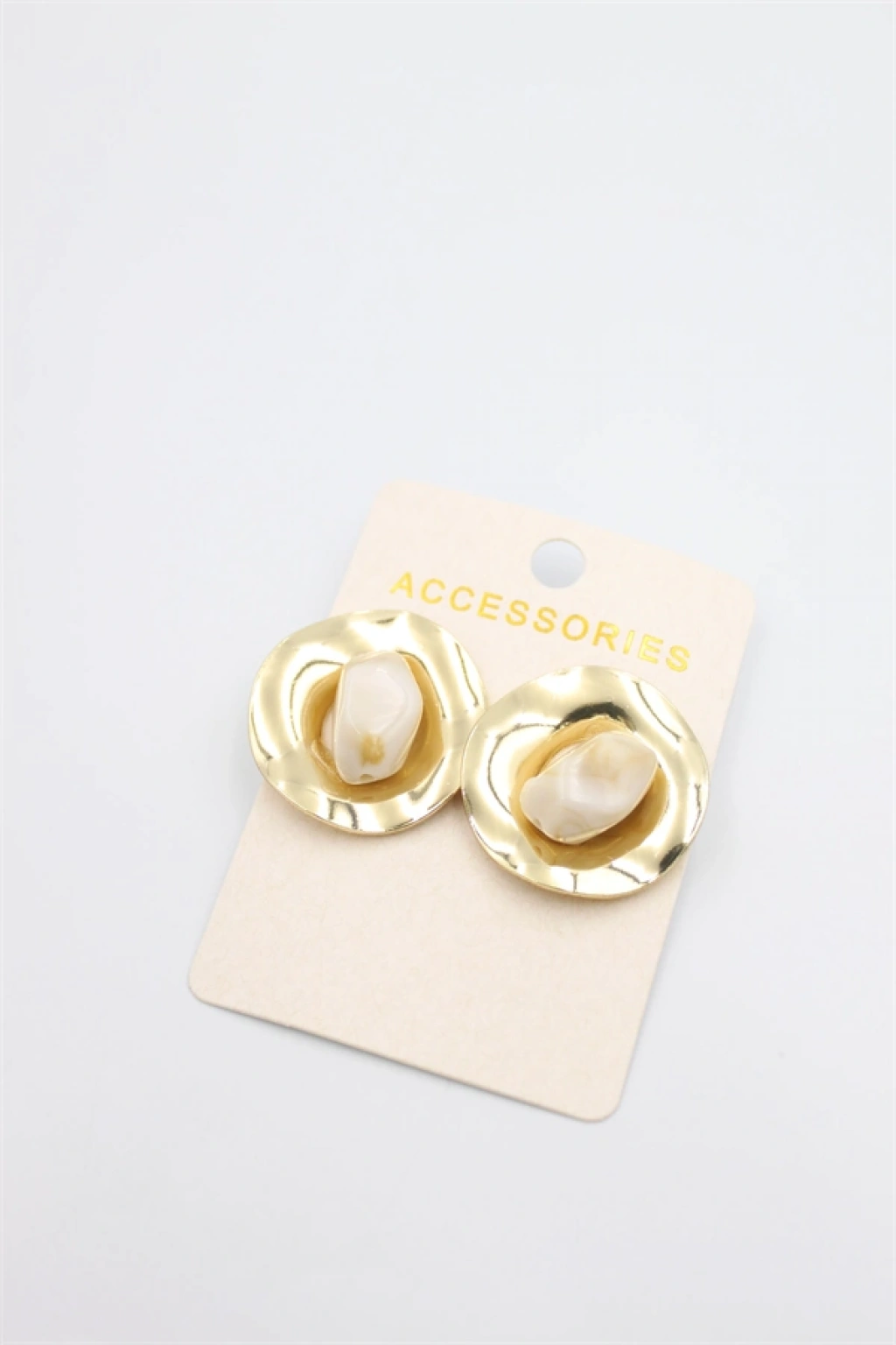 HERŞEYTREND Taşlı Metal Küpe - Krem