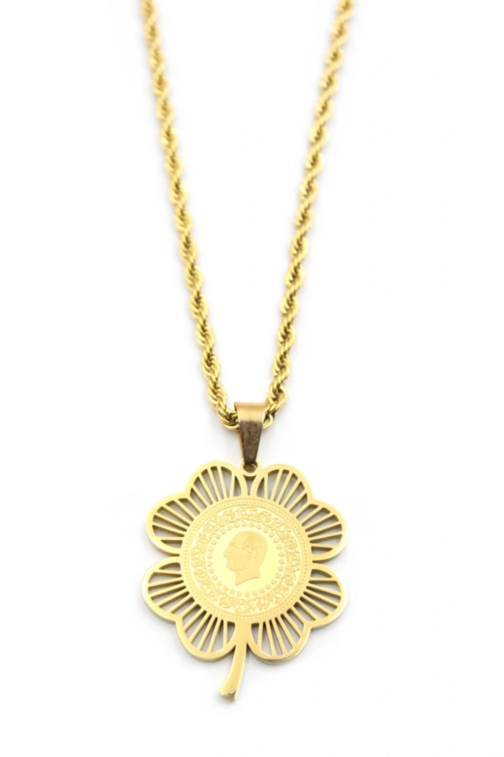 HERŞEYTREND Yarımlık Yonca Kolye - Altın