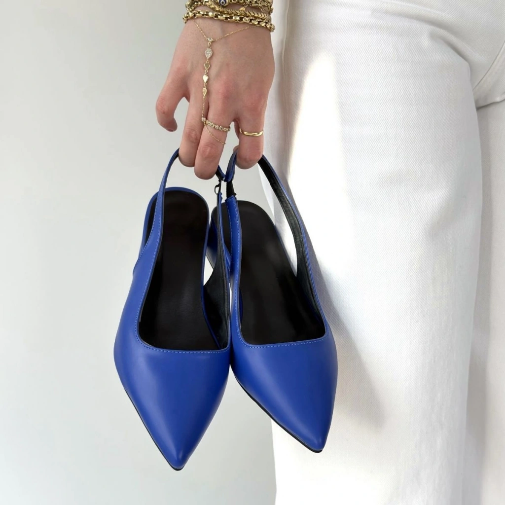HERŞEYTREND Morji Mavi Cilt Topuklu Ayakkabı