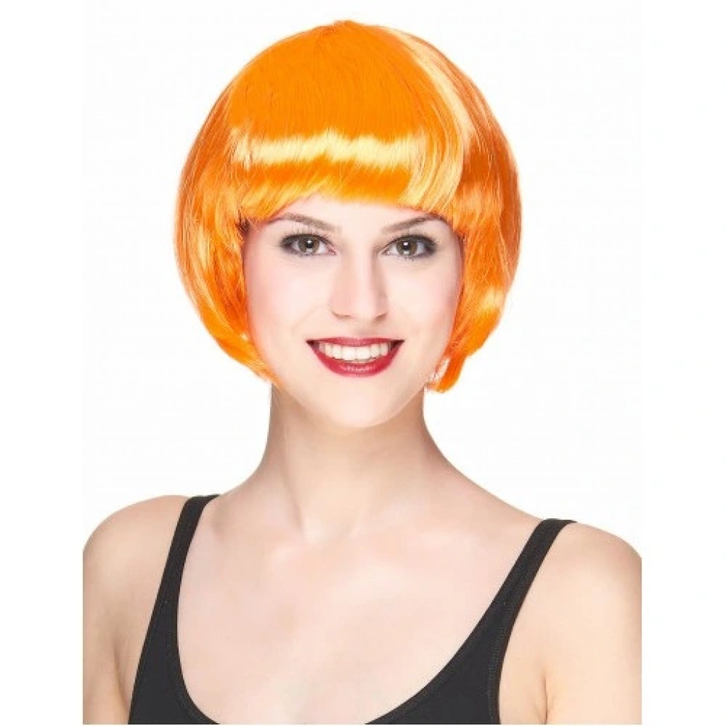 Neon Turuncu Renk Açık Turuncu Küt Parti Peruğu