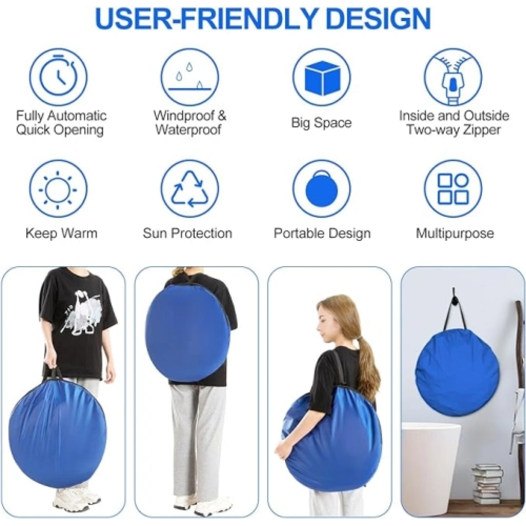 OTOMATİK KAMP GİYİNME ÇADIROtomatik kamp giyinme çadırı, kullanıcıya kamp deneyimini daha konforlu hale getirmek üzere tasarlanmış çok yönlü bir üründür. Otomatik açılma özelliği, çadırın hızlı ve kolay bir şekilde kurulmasını sağlar.Çadırın içindeki bölme, giyinme ve soyunma işlemleri için özel olarak tasarlanmıştır. Ayrıca, duş yapmak veya kamp tuvaletini kullanmak isteyenler için kullanışlı bir alan sunar. Bu özellikler, kullanıcının kamp alanında daha fazla gizlilik ve rahatlık sağlamak amacıyla eklenmiştir.Taşıma çantası, çadırın kolayca taşınmasını sağlar ve kullanıcıya taşıma sırasında pratik bir çözüm sunar. Dayanıklı malzemelerden üretilen bu çadır, kamp macerasını daha konforlu ve keyifli hale getirmek için tasarlanmıştır.Ürün Ölçüleri120 cm. x 120 cm. x 190 cm.Paket İçeriği1 adet otomatik kamp giyinme çadırı