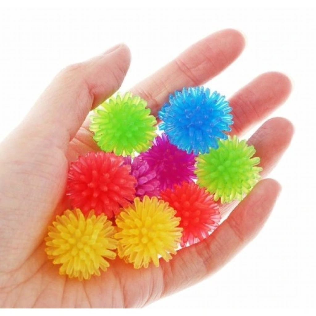 Parmak Masaj Topu (Dikenli Duyu Topları Seti)Ürün AçıklamasıEl ve parmak sağlığınızı desteklemek, kan dolaşımını hızlandırmak ve stresi azaltmak için tasarlanmış renkli ve eğlenceli bir çözümdür! Bu Parmak Masaj Topları, küçük, dikenli yapısıyla hem masaj hem de duyusal uyarı sağlar. Özellikle uzun süre klavye kullananlar, el yorgunluğu çekenler veya rehabilitasyon egzersizleri yapanlar için idealdir. Görselde görüldüğü gibi, parlak ve canlı renk seçenekleriyle (yeşil, mavi, sarı, kırmızı, mor) motivasyonu artırır. Yumuşak, esnek ve dikenli dokusu sayesinde avuç içindeki ve parmaklardaki sinir uçlarını uyararak rahatlama sağlar.Ürün ÖzellikleriTasarım: Küçük boyutlu, yuvarlak ve esnek dikenli yapıMalzeme: Yumuşak, esnek ve sağlıklı kullanım sunan dayanıklı malzeme.Fonksiyon: El ve parmaklardaki kan dolaşımını hızlandırır, kasları gevşetir ve masaj etkisi yaratır.Duyusal Uyarı: Dikenli yüzeyi sayesinde duyusal ve dokunsal algıyı güçlendirir.Renkler: Parlak ve çeşitli renklerde (yeşil, mavi, sarı, kırmızı, mor vb.) mevcuttur.Kullanım AlanlarıRehabilitasyon: El ve parmak sakatlanmaları veya ameliyatları sonrası hafif egzersizler ve hareket aralığını artırmak için.Stres Giderme: Stresi ve gerginliği azaltmak için elde sıkma ve yuvarlama egzersizleri yapmak.Mesleki Kullanım: Uzun süreli yazı yazan, daktilo kullanan veya el becerisi gerektiren işlerde çalışan kişilerde el yorgunluğunu gidermek için.Duyusal Oyun: Çocuklarda ve yetişkinlerde dokunsal duyusal entegrasyonu desteklemek amacıyla.Paket İçeriğiAdet ve renk sayısı değişiklik gösterebilir