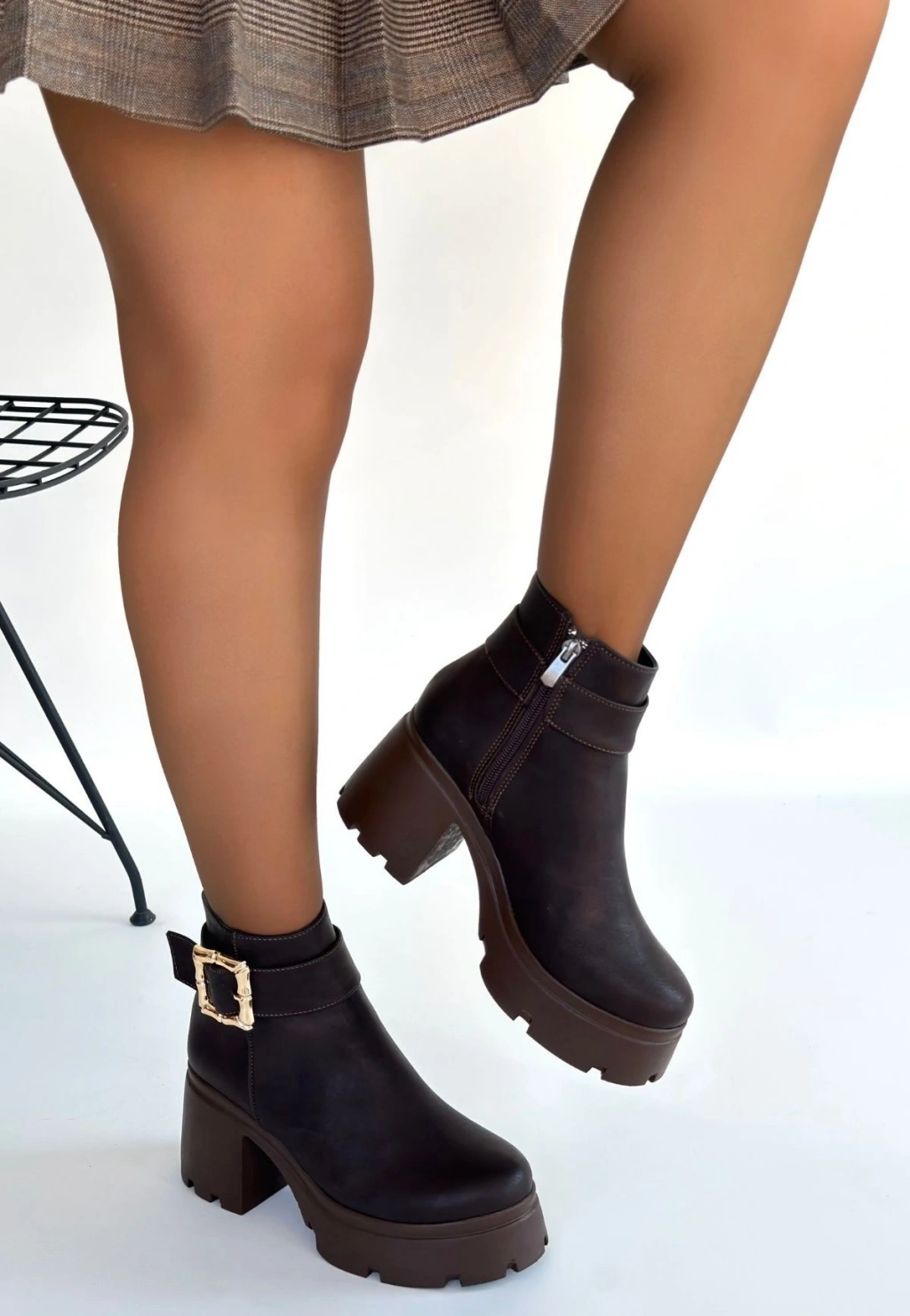 HERŞEYTREND Pinma Acı Kahve Cilt Topuklu Bot