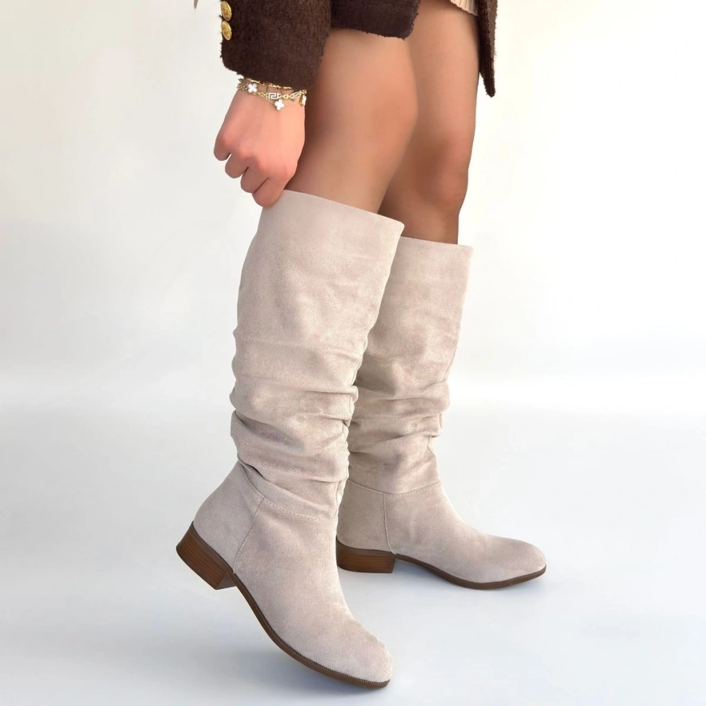 HERŞEYTREND Winda Bej Süet Körüklü Topuklu Çizme